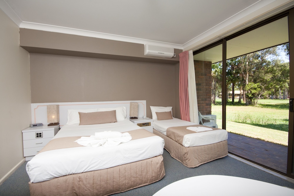 When you stay at Island Palms Motor Inn in Forster, you'll be in a shopping district and convenient to Forster Marina and Forster Tenpin Centre. This motel is within close proximity of Forster-Tuncurry Golf Course and Forster Dive Centre.Rooms Make yourself at home in one of the 32 air-conditioned rooms featuring refrigerators and LED televisions. Your room comes with a memory foam bed. Rooms have private patios. Complimentary wireless Internet access keeps you connected, and satellite programming is available for your entertainment. Private bathrooms with showers feature complimentary toiletries and hair dryers.Amenities Enjoy recreation amenities such as an outdoor pool or take in the view from a garden.Dining Satisfy your appetite at the motel's restaurant, which serves lunch and dinner, or stay in and take advantage of room service (during limited hours).Business, Other Amenities Featured amenities include luggage storage, laundry facilities, and a safe deposit box at the front desk. Planning an event in Forster? This motel features 581 square feet (54 square meters) of event facilities. Free self parking is available onsite.