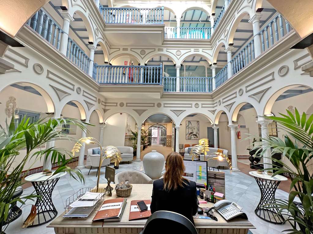 Facilities and services include a 24 hrs reception, coffee bar, outdoor pool, breakfast room, elevator, wireless internet in public areas and parking (extra charge).The rooms are equipped with air conditioning, TV, safe box, wireless internet, telephone, desk and hairdryer.Address: Santillana 5-7, 41004, Seville, Spain.