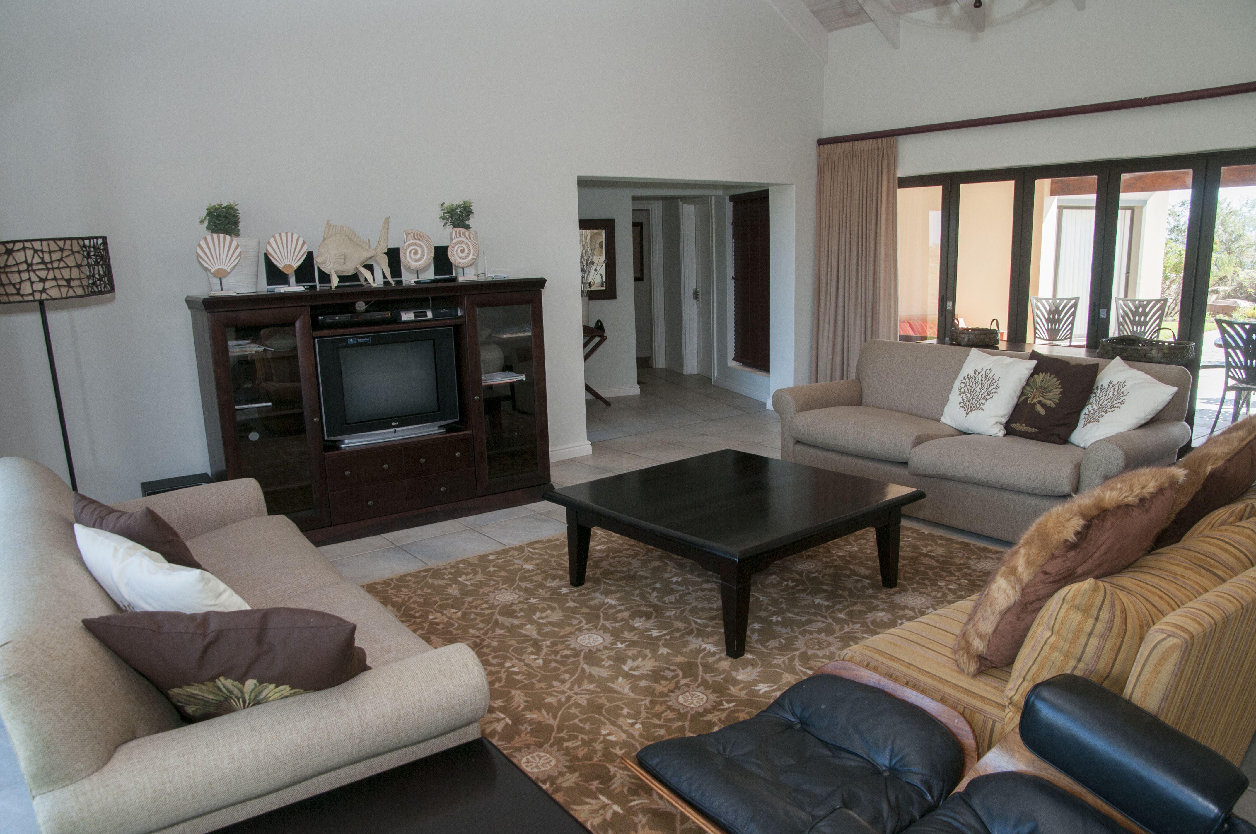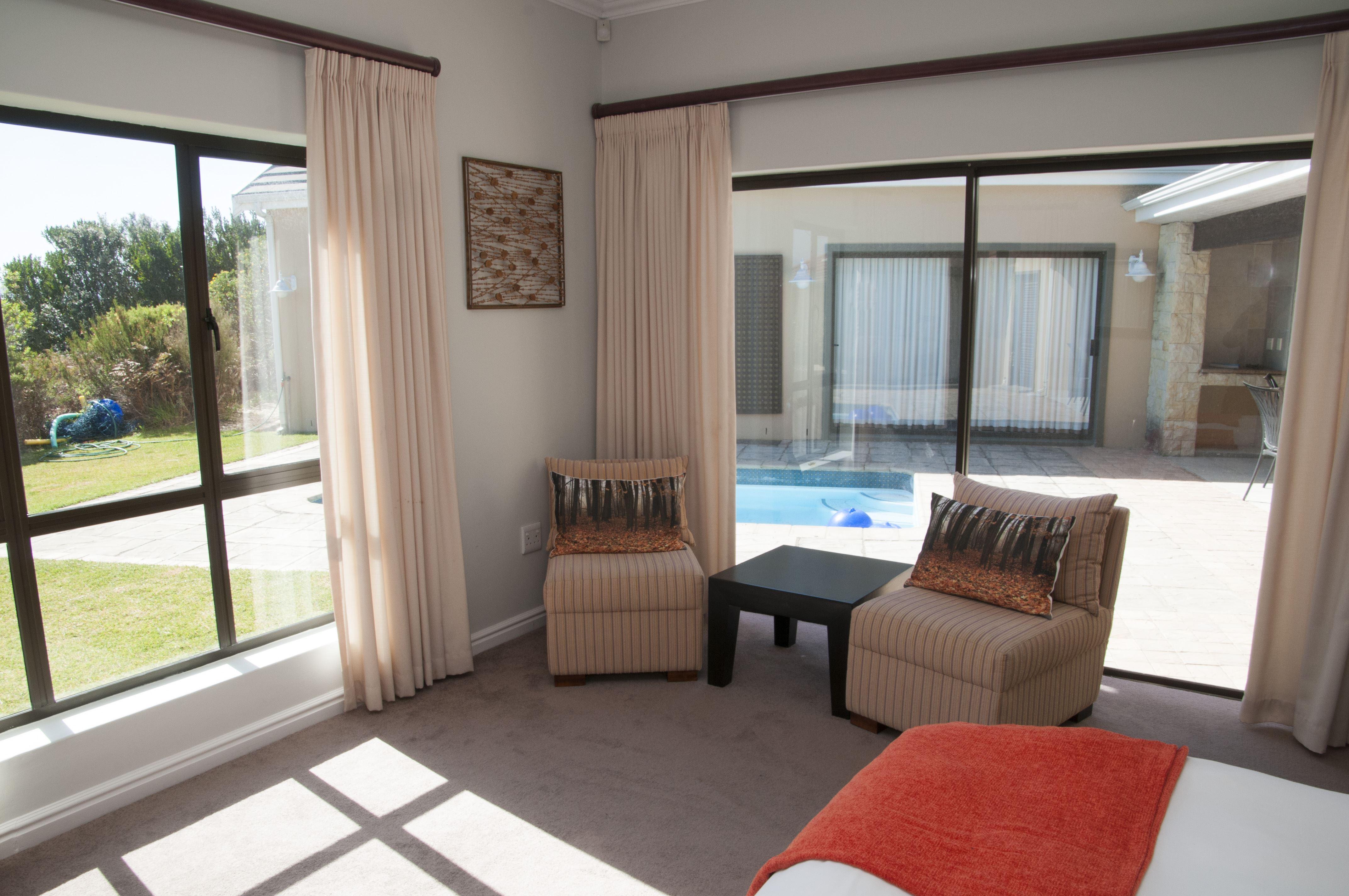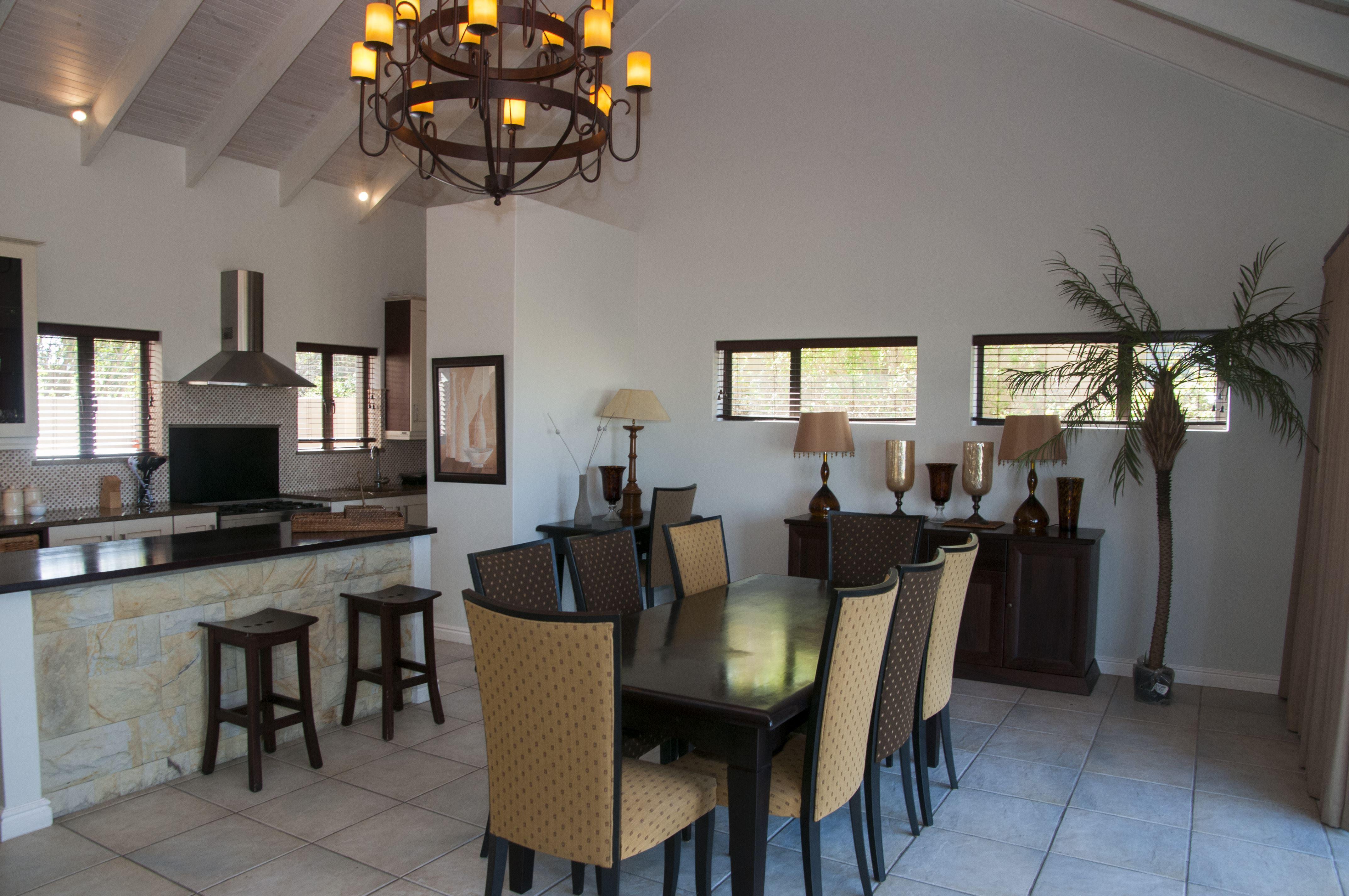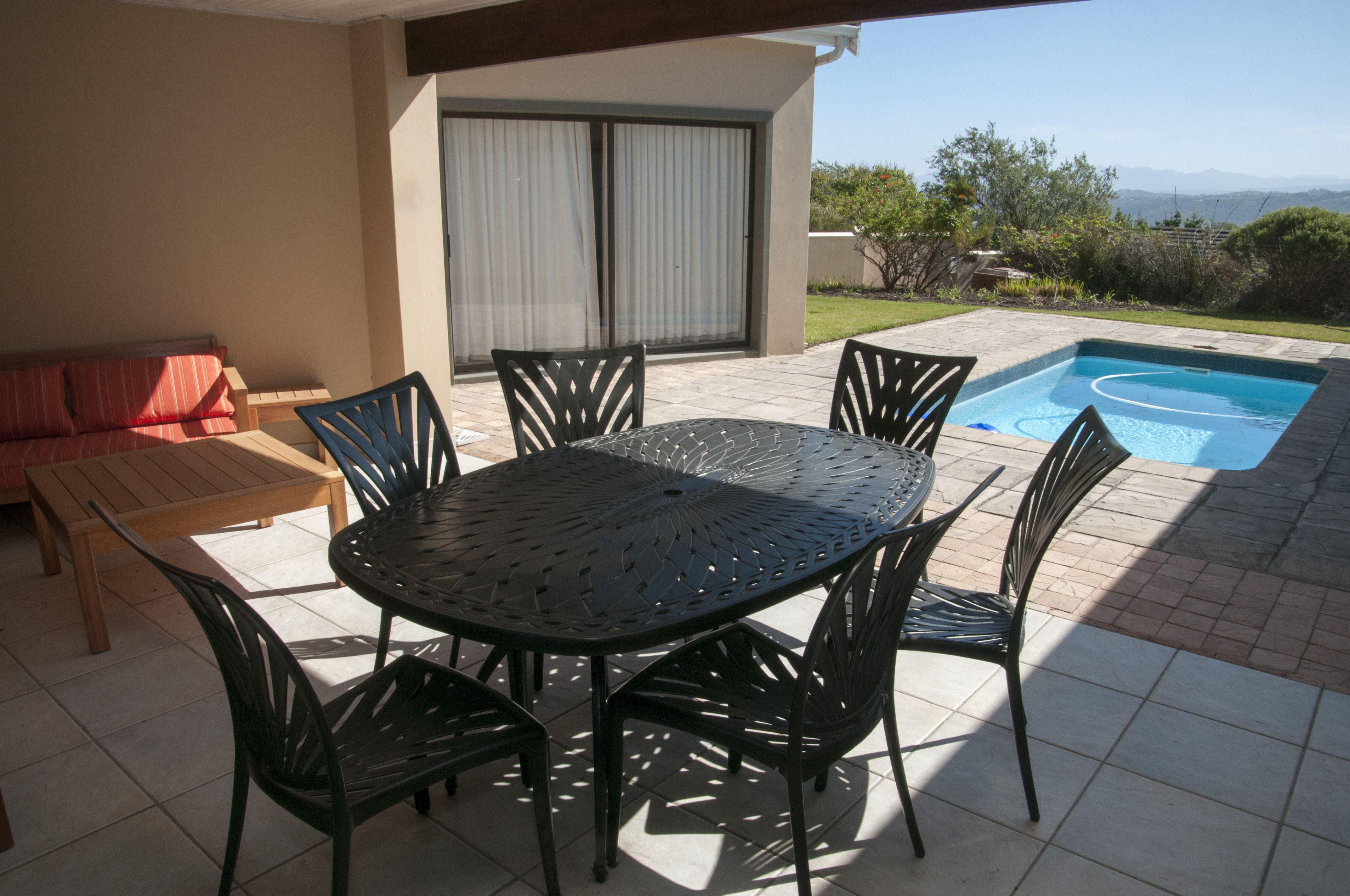 House Ivan is a luxurious and fully furnished self-catering home located in the spectacular Pezula Estate. The house offers comfortable accommodation ideal for a family or a group of six.The living area consists of an open-plan lounge, kitchen and dining room. The kitchen area is fully equipped with a top-of-the-range gas oven, microwave and stainless steel kettle and toaster, with all cutlery and crockery provided. The kitchen overlooks the dining area with a large table and seating for eight people and large doors opening up onto a paved patio and swimming pool.The