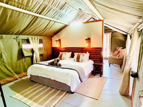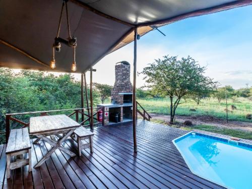 Jabula is a private family-owned bush camp in the heart of the bushveld where the Big Five, as well as the Little Five, roam freely. Our wish for each guest is that Jabula Bush Camp leaves a footprint of Joy and Happiness in each and every person's memory that visits this special piece of Africa!In-room facilities include a full bathroom and towels, a kitchen, a built-in braai on the deck, a designated smoking area, a fan, a fridge/freezer, an outdoor fire pit, outdoor furniture, purified water, solar electricity, and a splash pools. Guests also enjoy access to secure parking, a br