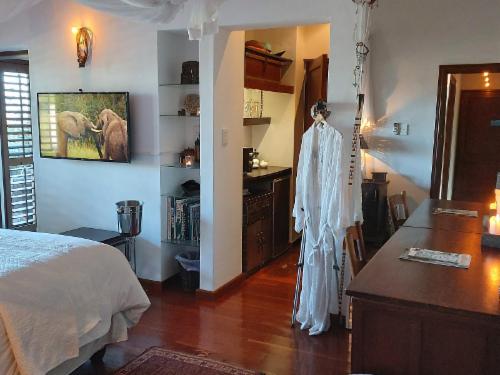 Eclectic-chic African décor with luxurious wooden floors and fold away doors leading onto the deck with sea views. Each room is uniquely designed & decorated with high quality beds. Free Wi-Fi, a large flat screen TV, Netflix, air-conditioning, ceiling fan, fridge, microwave and a coffee and tea station together with bathrobes and luxurious toiletries for your comfort.