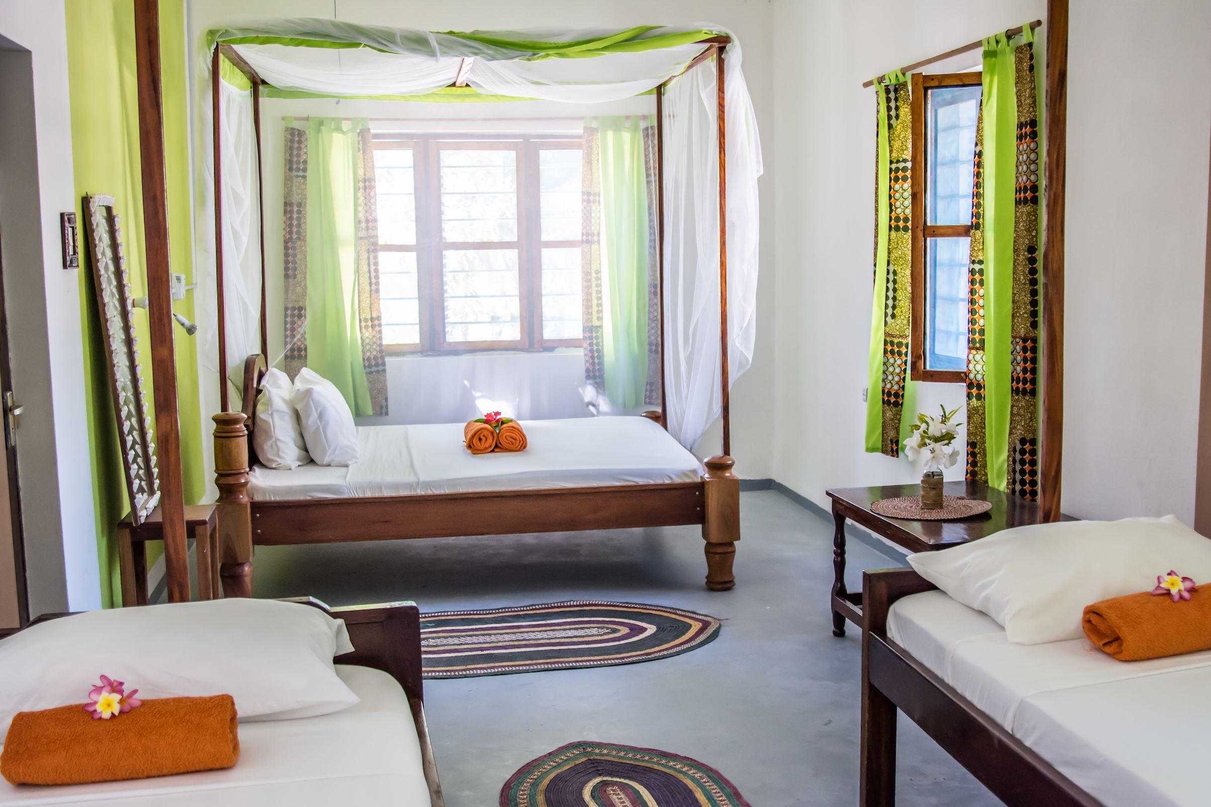 There are six private Bungalows surrounded by large palm trees and tropical plants. Extra beds can be added for children on request.