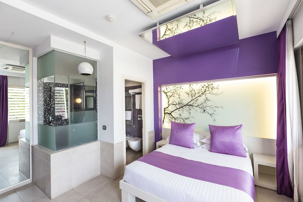 This ultra modern hotel lies just an 8 minutes' driving distance from Rome's EUR Business District. Guests will find themselves just a short driving distance away from the host of captivating attractions that this mesmerising city has to offer. This stylish hotel lies just a 15 minutes' driving distance from Fiumicino and Ciampino airports. This wonderful hotel welcomes guests into a world of style and artistic elegance. The guest rooms are sumptuously appointed, featuring bold, vivid colours complemented by crisp white features. The rooms come complete with modern amenities for added comfort and convenience. Guests are invited to take advantage of the first-class facilities that this striking hotel has to offer.