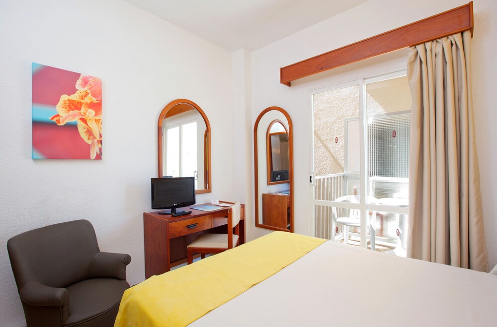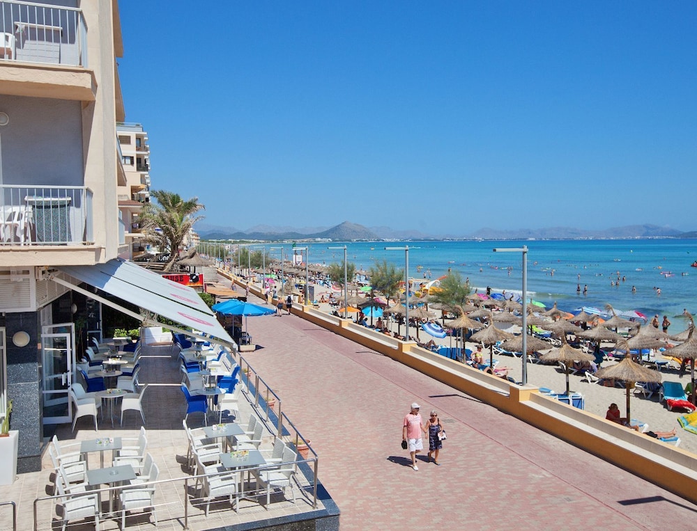 The JS Can Picafort hotel enjoys breathtaking views over the Bay of Alcudia and it is situated directly next to the sea and close to the tourist centre of C'an Picafort. The beach, numerous shops, various bars and restaurants as well as the public transport are also in the hotel's vicinity. Palma airport is located around 60 km away.The hotel facilities and services include 24 h reception, lobby area with lifts, WiFi internet access (with extra charge), bar, restaurant, TV lounge, outdoor pool, children´s pool, sun terrace and tennis court.The rooms are equipped with A/C, TV, telephone, safe and bathroom with bathtub/shower. Laundry service is available (with extra charge).Note: The guests also be able to enjoy the Spa and gymnasium installations in the Hotel JS Sol of Ca’n Picafort (less than 150 m and with extra charge).Address: Via Alemania, 2, 07458 Can Picafort, Mallorca, Spain.