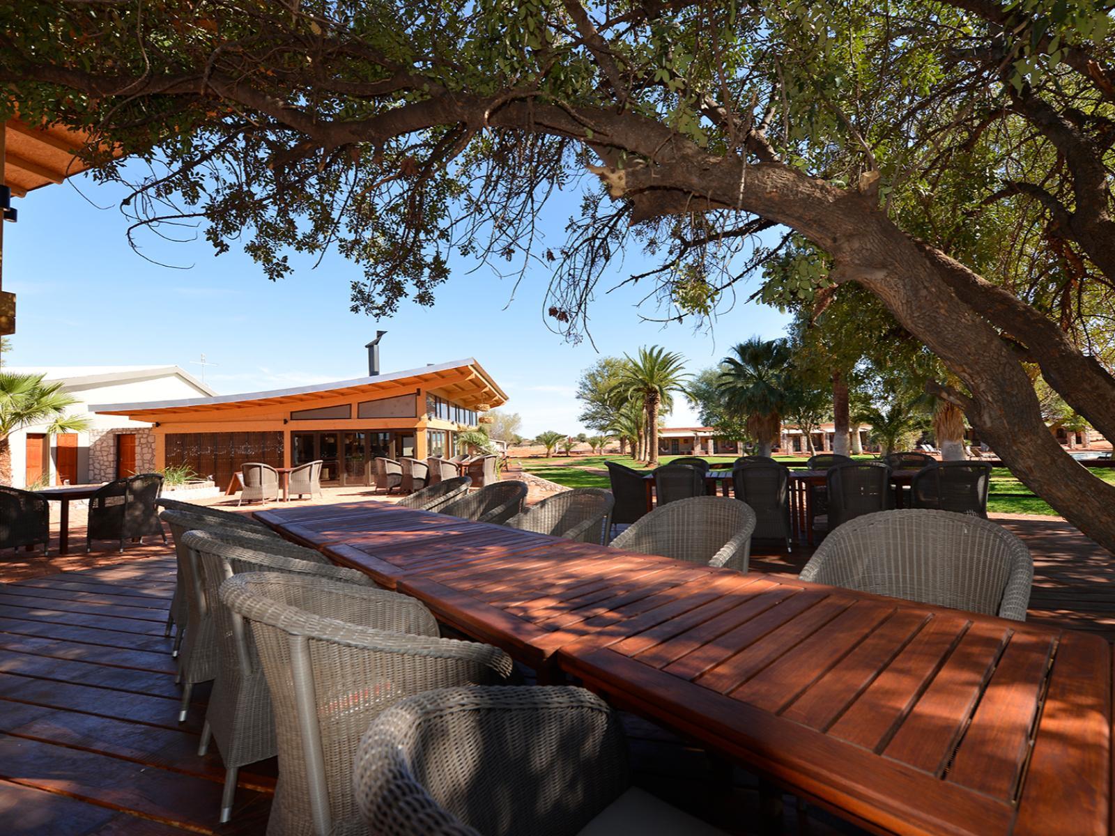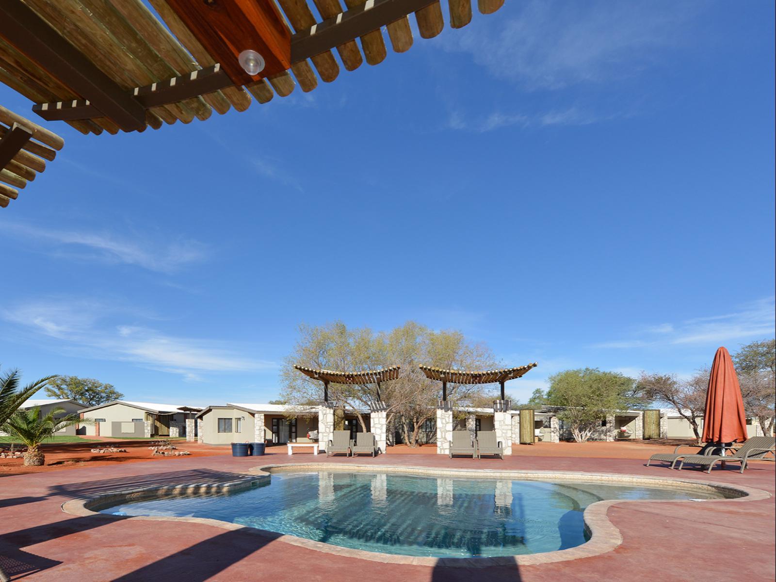 In the midst of the red dunes Kalahari Anib Lodge rises like a lush green oasis: the restaurant and chalets are arranged around a shaded courtyard with a large swimming pool.Kalahari Anib Lodge offers 36 standard rooms with a private veranda and 19 comfort rooms, set slightly apart, with views of the open Savannah and with a separate swimming pool as well as 4 Camping2Go units, Camping guests can choose between three exclusive sites equipped with private bathrooms and barbecue facilities.Located about 30 km northeast of Mariental the lodge makes for an ideal
