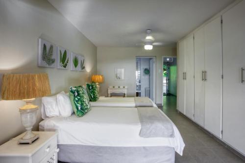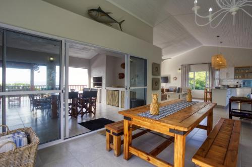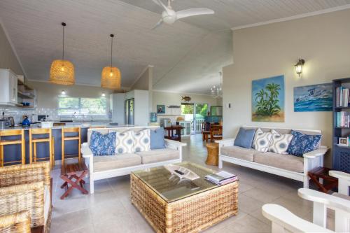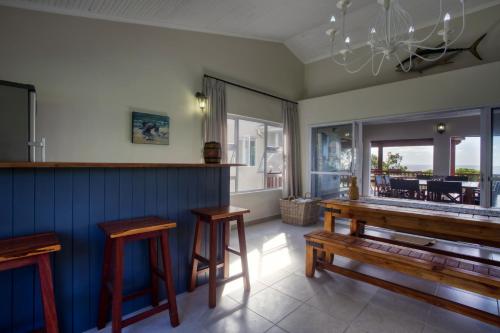 The house is serviced by a housekeeper, She cleans, makes beds, and washes up. She is not available to cook or do any extra chores. A gardener is shared with house 9. He will keep the outside area neat, set up the shade on the beach, take down cooler boxes, clean the braai area, etc.