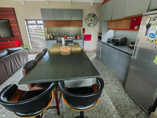 Karibu Self-catering Accommodation is situated in Vermont, Hermanus, and offers quality accommodation for holidaymakers. It is situated within easy reach of numerous shops, restaurants, the beach, activities, and attractions. The accommodation comprises 3 units to choose from. Each is fully equipped for your self-catering needs.The spacious kitchen has large granite tops and offers a fridge with a freezer, an induction hob, microwave electric frying pan, kettle, grill and a proper variety of kitchenware. The living room has a flat-screen Smart TV that offers the full DS