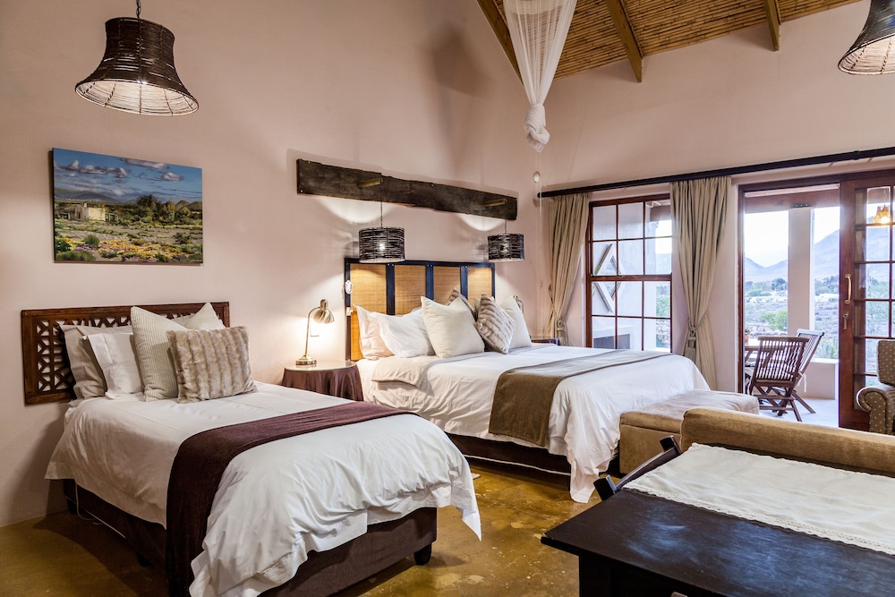 Howard and and the Karoo View Team would like to welcome you to our child, wheelchair & pet-friendly luxurious accommodation married with all your “home from home" comforts overlooking the village of Prince Albert 350m away, with magnificent views of the Swartberg & Karoo plains. Health breakfast provisions, fresh farm milk, daily servicing, free unlimited Wi-Fi, air-conditioners, log fireplaces, plunge pools, braai areas & safe, secure off-street parking, await you. Our 4 cottages accommodate from 1 - 4 guests in each, our private suite up to 3 or our 3 bedroom house up to 9, perfect for sing