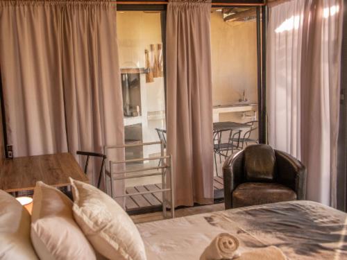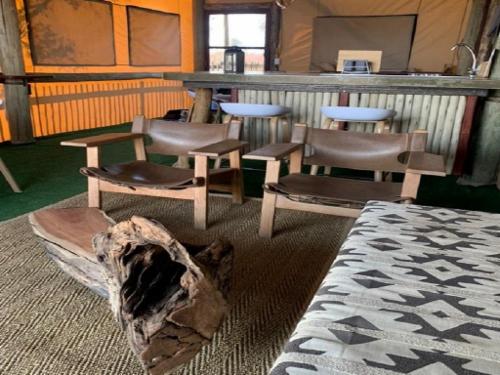 On the dune with a real holiday view, we have four twin tented units, with own ablution at the back of the tent. Tents are equipped with bedside lamp, towels and hot water is supplied by “donkie”.