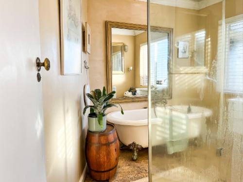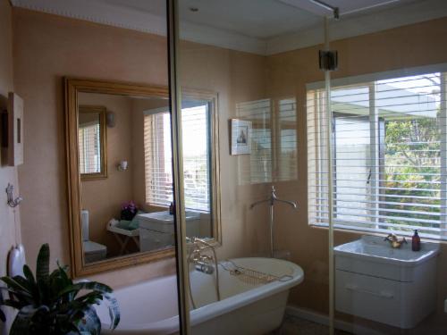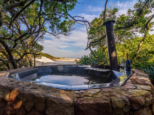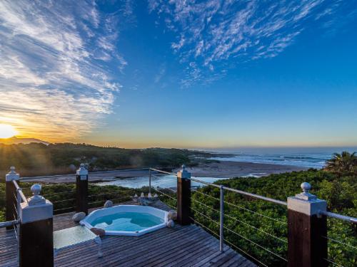 Kennedy's Beach Villa is situated on the Onrus River beachfront and offers absolute privacy, luxury, romance, and an organic lifestyle. Southern Right whales can be seen from the deck overlooking the beachfront and guests can enjoy panoramic views of the sea, river, nature reserve, and mountain range.