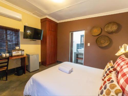 Under the dazzling Magaliesberg mountain range lies this charming village, Hartbeespoort Dam. The area is extremely popular with nature lovers, adventure seekers, and city dwellers wanting to get away from the bright city lights to rest in peaceful surroundings.Experience the ultimate in relaxation and comfort at Khayamanzi Guesthouse. Accommodation comprises of 10 spacious en-suite double rooms, each individually decorated in its own style, and boasts 100% pure cotton bedding linens. All of the rooms feature queen-size beds except for three rooms that have king-size beds. With sep
