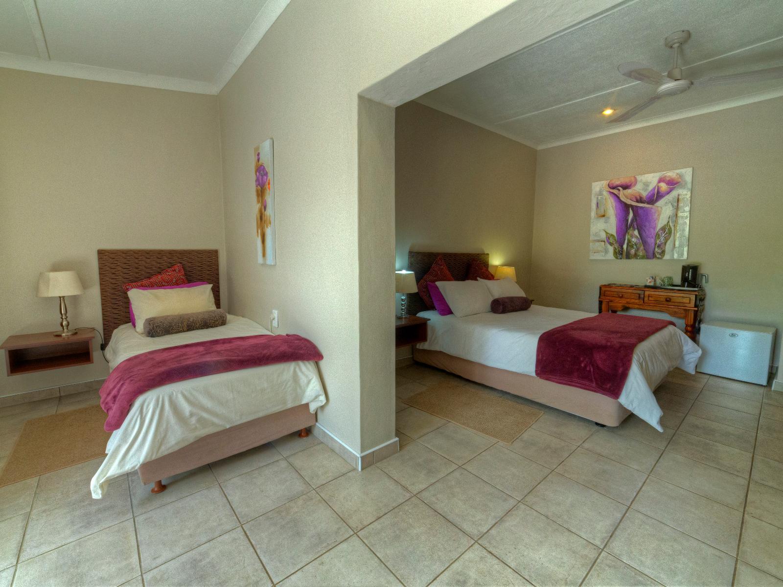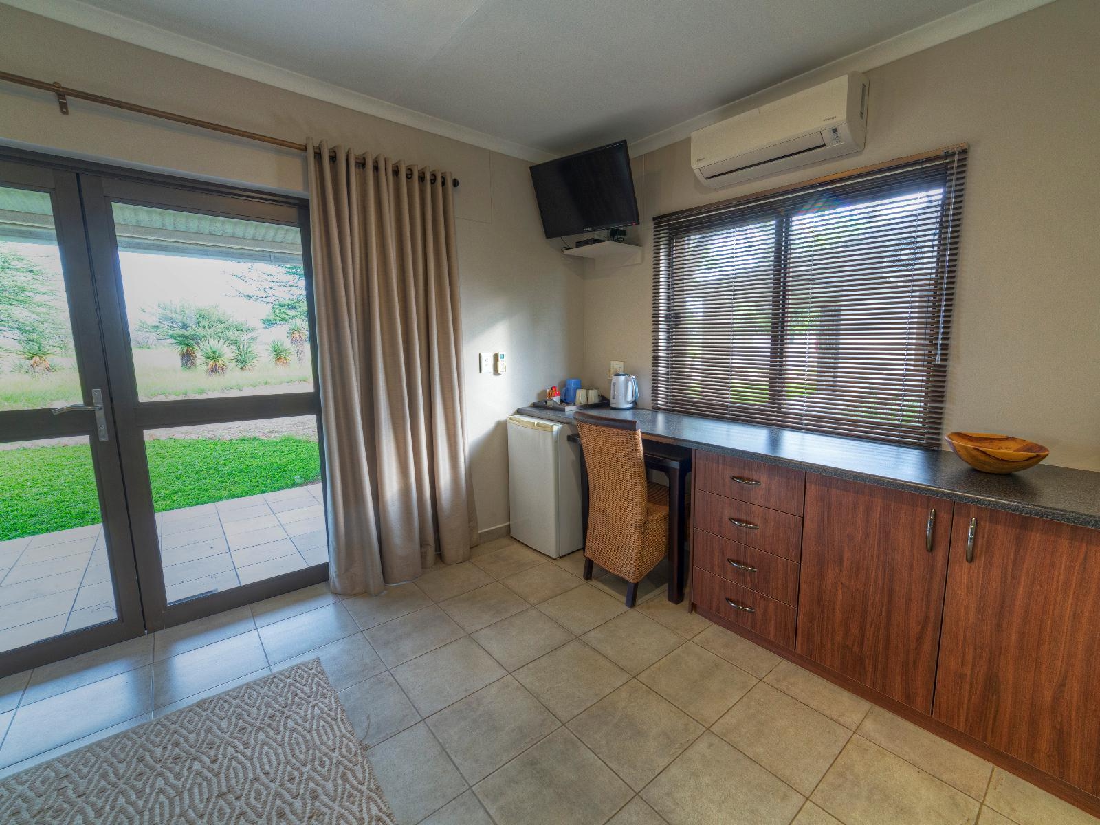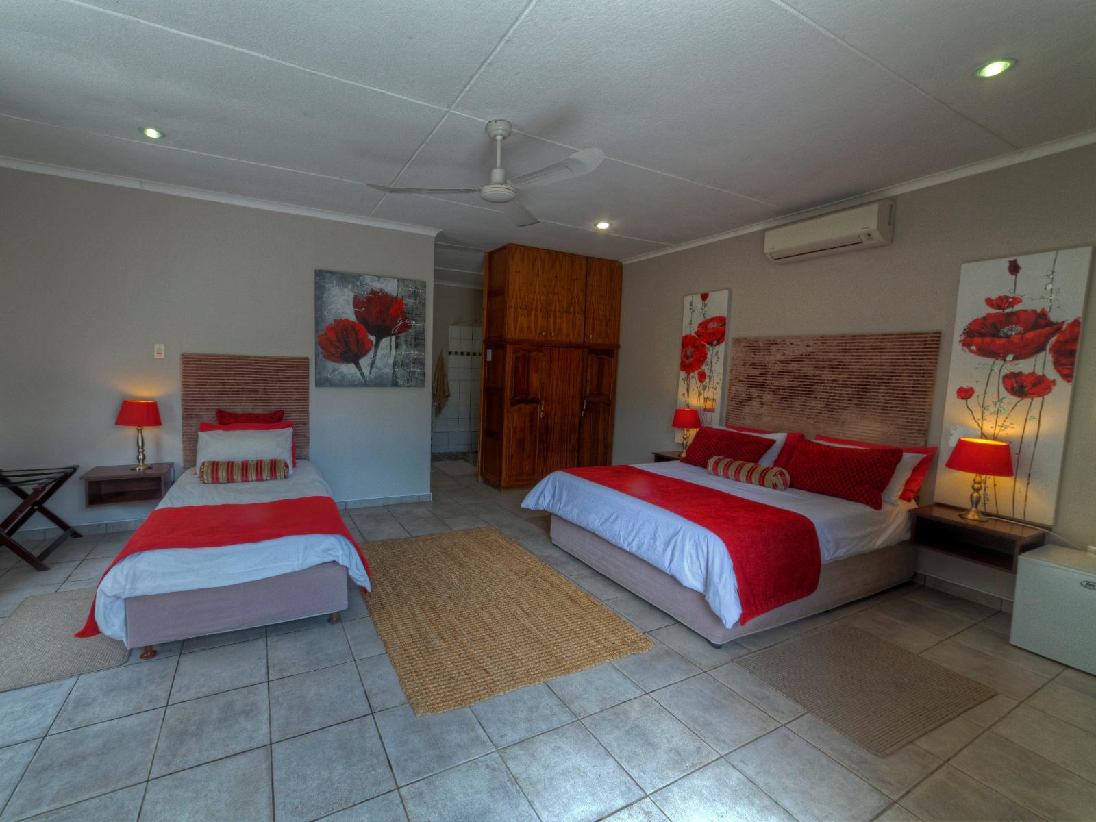 The farm-style Khoi-Khoi Guesthouse is a little oasis situated next to the B1 road between Otjiwarongo and Otavi in the North of Namibia, making it the perfect stopover with a relaxed atmosphere, surrounded by waving acacia trees, aloes and spectacular sunsets.Situated on a farm, guests have a choice of queen and family rooms, each with a private entrance. The family rooms contain a queen-size and a single bed, with an extra bed on request at an additional cost while the queen rooms are perfect for couples or solo travellers, and are furnished with queen-size beds.All t