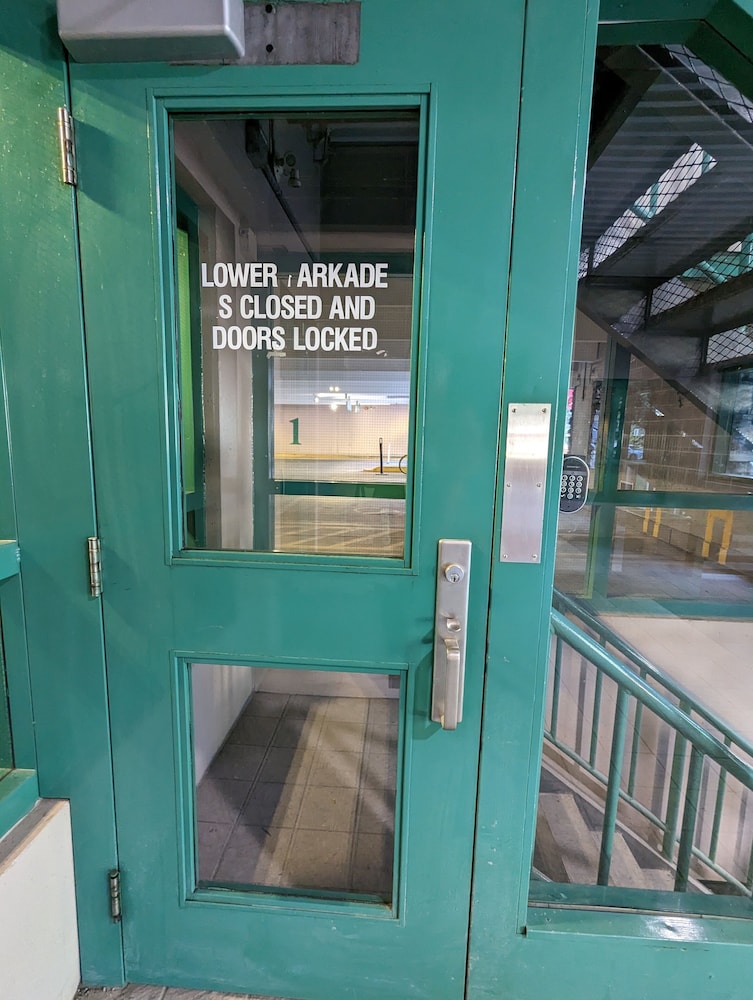 No parking available. Private parking is possible on site (reservation is not needed) and costs CAD 5 per day.