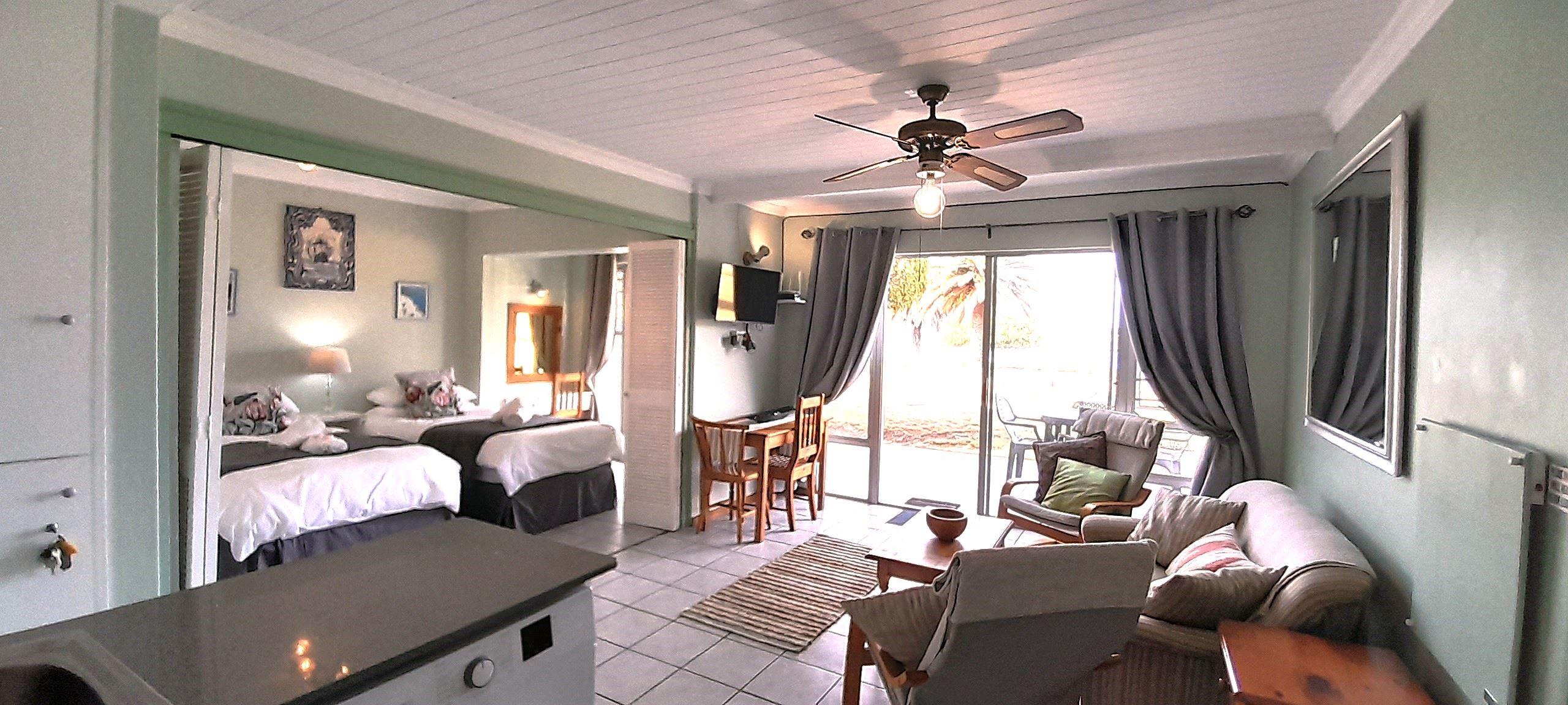 This recently upgraded self-catering apartment is located on the waterfront on the ground floor. It consists of two bedrooms, en-suite bathrooms, an open-plan fully equipped kitchen, a lounge area that flows onto the patio and lawns overlooking the Berg River with its rich bird life. All linen and towels are provided.