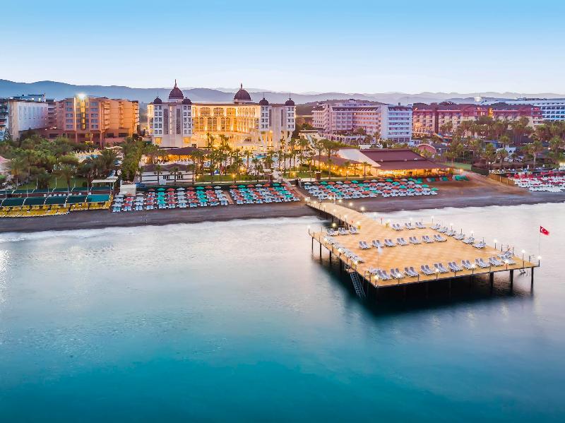 This air-conditioned beach hotel comprises a total of 398 rooms and is built on 14,000sqm of land bordering the turquoise waters of the Mediterranean on Turkey's southern coast. Situated 3km from the district of Okurcular, the hotel is positioned half-way between the popular resorts of Alanya and Side. Taxis and public transport are available on the main road in front of the hotel, and there is a shopping centre 2km away. Guests can enjoy sunny afternoons spent relaxing in the gardens and lounging in a sun lounger on the long sandy beach, which features a jetty, while those more adventuresome visitors might go scuba diving, fishing and snorkelling in the sea. The onsite restaurant serves both Turkish and international cuisines for lunch and dinner in addition to a buffet breakfast, all for a delightful holiday of sea and sun.