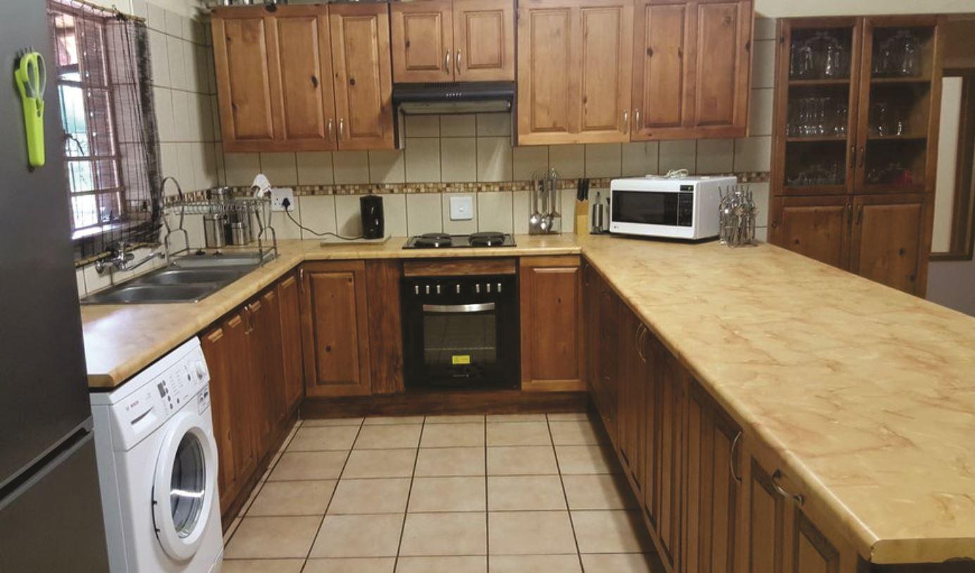 The fully equipped, double-storey house has a large deck overlooking the park. Watch the animals such as giraffe, kudu, zebra and impala as they roam freely in Marloth Park.