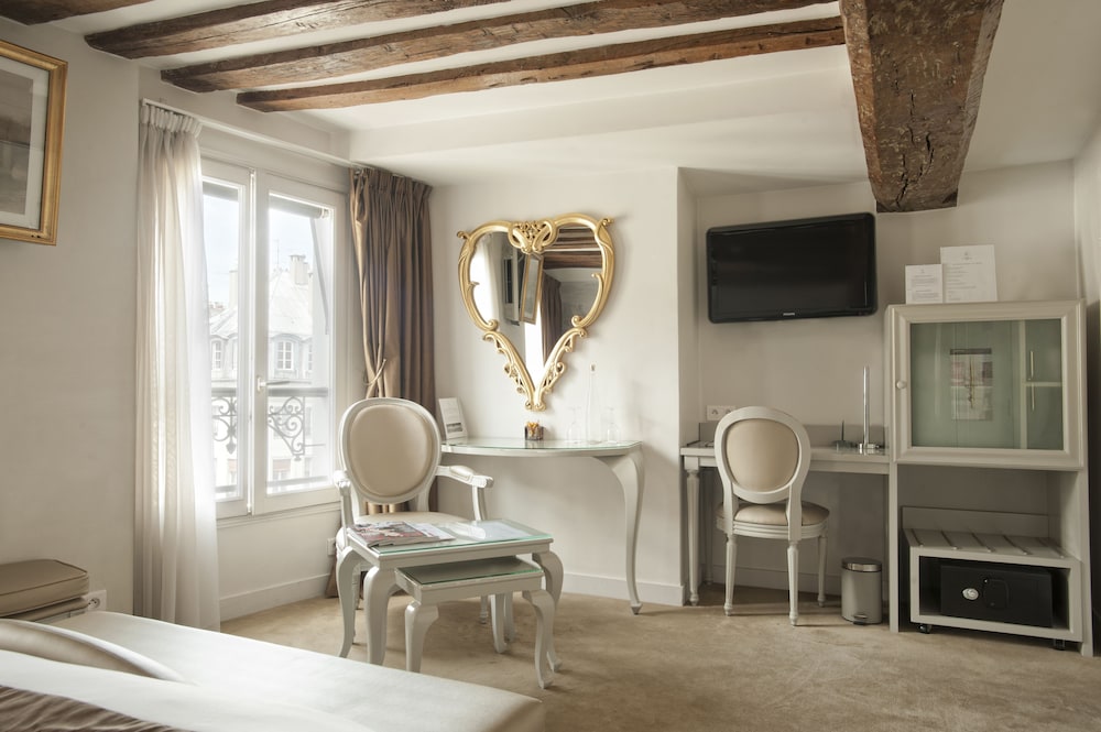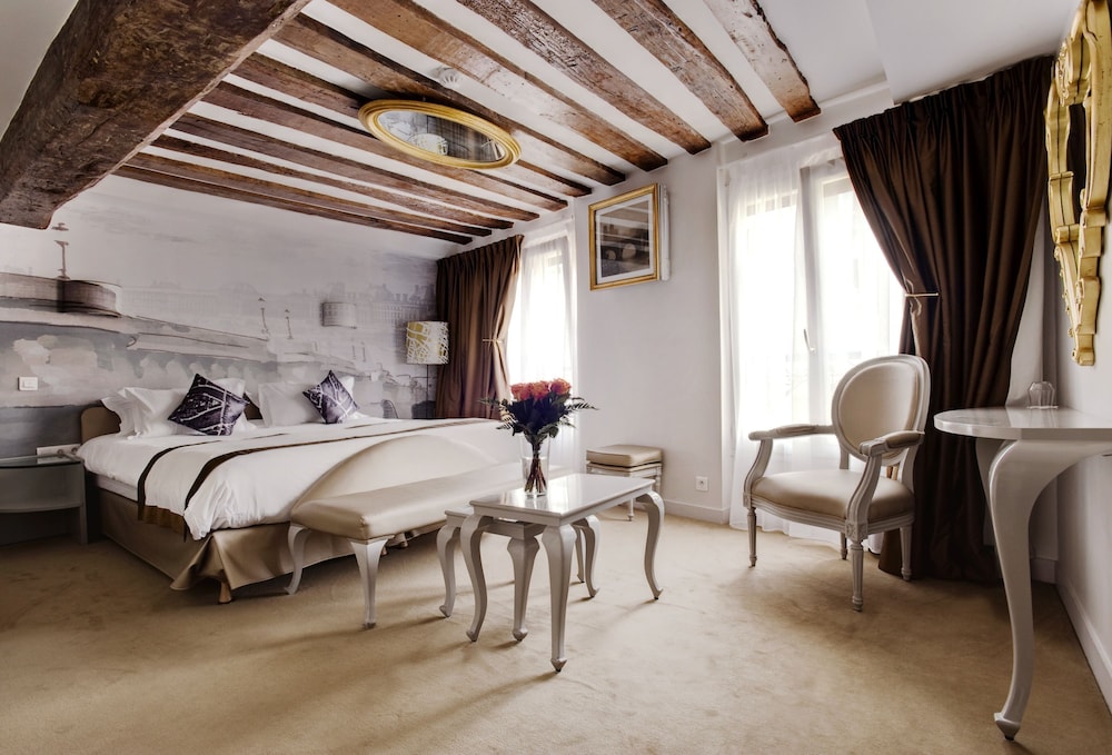 This luxurious hotel boasts a brilliant location in the heart of Paris' 1st arrondissement, just five minutes' walk from the Louvre and the Jardin des Tuileries. Guests will also be able to easily reach a variety of famous city sights on foot, including the Pont Neuf and Notre Dame Cathedral on Ile de la Cite, the Musee d'Orsay, and the Obelisk at Place de la Concorde. The hotel's lavish, ornate suites feature unique décor inspired by places, moments and important figures in the history of France, and all are fully equipped with modern comforts. The hotel also offers a variety of helpful services such as a 24-hour reception, breakfast with room service, and arranging for airport transportation, all for a wonderful stay in the romantic centre of Paris.