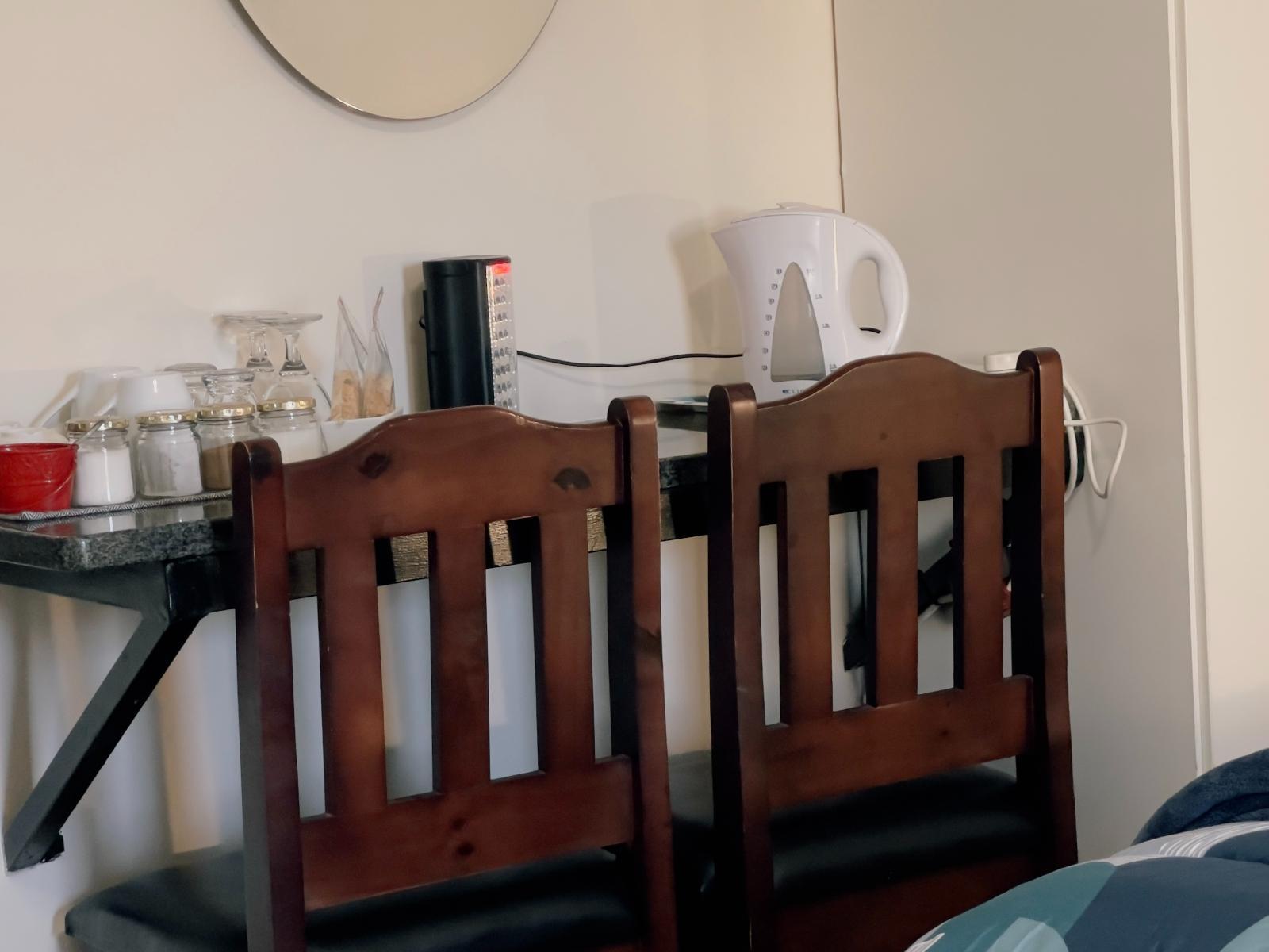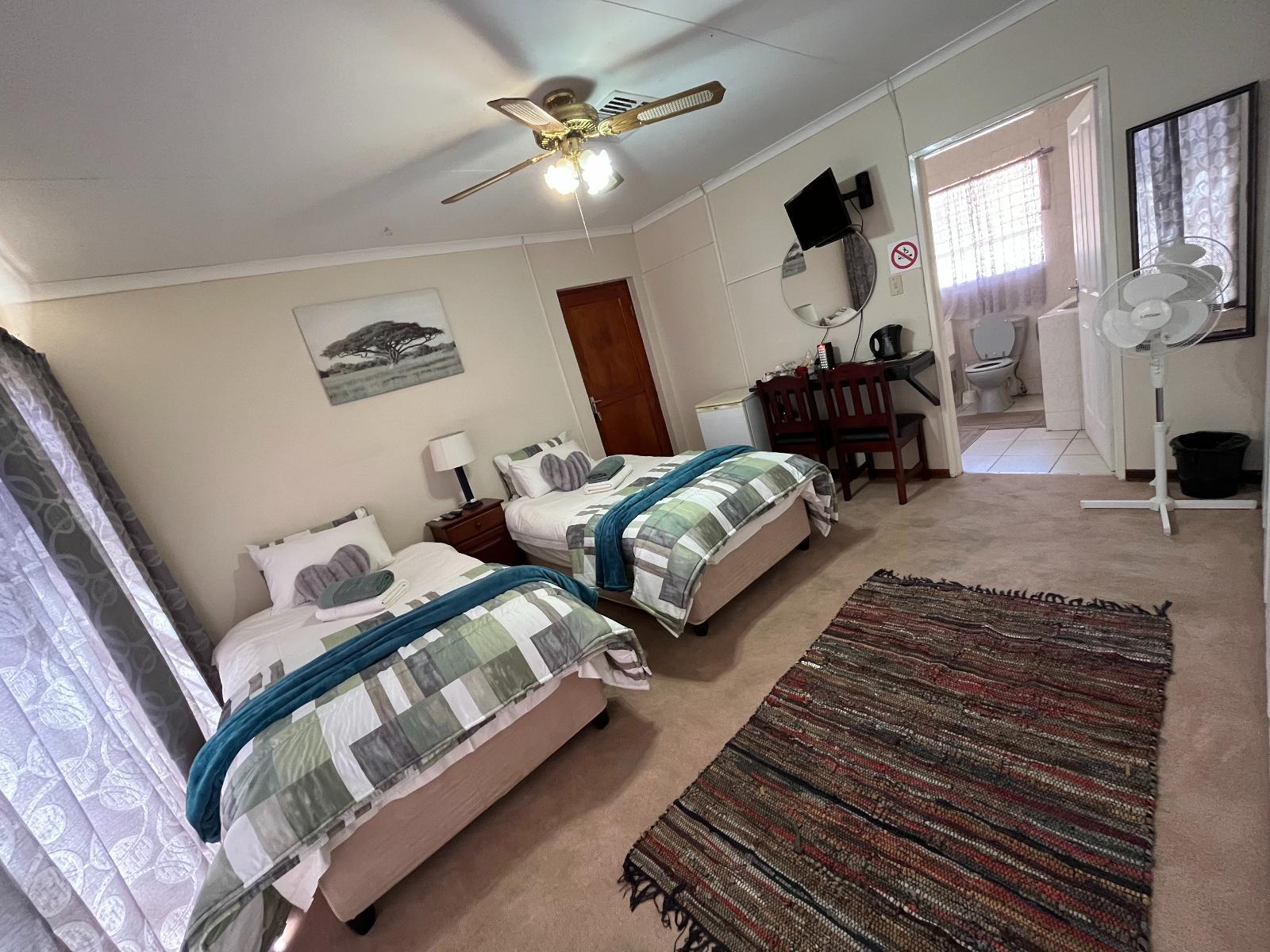 Kuhns Rus en Vrede offers comfortable accommodation in a peaceful neighbourhood in Kimberley, situated within close proximity to shops, cinemas, and restaurants. The guest house is ideal for business and leisure travellers, and is conveniently located approximately 1.9 km from the N12 and N8 main routes.Accommodation is offered in comfortably furnished guest rooms, each with an en-suite bathroom, a work desk, TV with DStv channels, tea and coffee station, a bar fridge, and complimentary Wi-Fi. Linen and towels are provided and the rooms are serviced daily.A full English and c