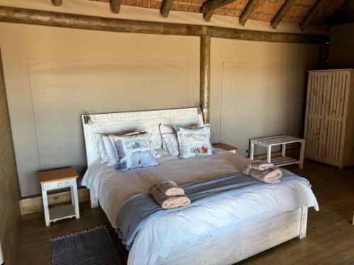 The tented camp can accommodate two guests at a time. The sleeping area has a king-size bed and there is an en-suite bathroom with a shower, toilet and basin.