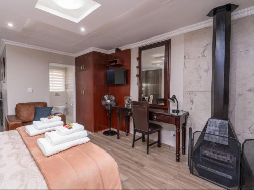 Welcome to Kuiersaam Guesthouse.Kuiersaam Guesthouse is situated in the heart of Secunda where a warm welcome awaits your arrival. The guest house has spacious rooms in a modern sophisticated environment. The location is ideal for business travellers, conferencing, events and holidaymakers looking for a peaceful environment.The spacious rooms boast stylish rooms with luxurious beds and a tranquil environment. These spacious rooms have an en-suite bathroom, a TV, bar fridge and tea and coffee making facilities. All the rooms enjoy doors leading out into the garden, plush