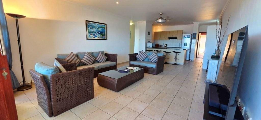Kuta 20 is a modern and spacious 6 sleeper unit with beautiful sea views in Ramsgate North. The apartment has 3 bedrooms, of which the main bedroom is fitted with a queen bed, the second bedroom is fitted with a double bed, and the third bedroom with 2 single beds. All bedrooms are equipped with ceiling fans for your comfort.The en-suite bathroom is fitted with a shower, basin and toilet and the second bathroom with a bath, basin and toilet.The lounge is tastefully furnished with seating for 6, and is equipped with a Smart TV and unlimited Wi-Fi for your entertainment.T