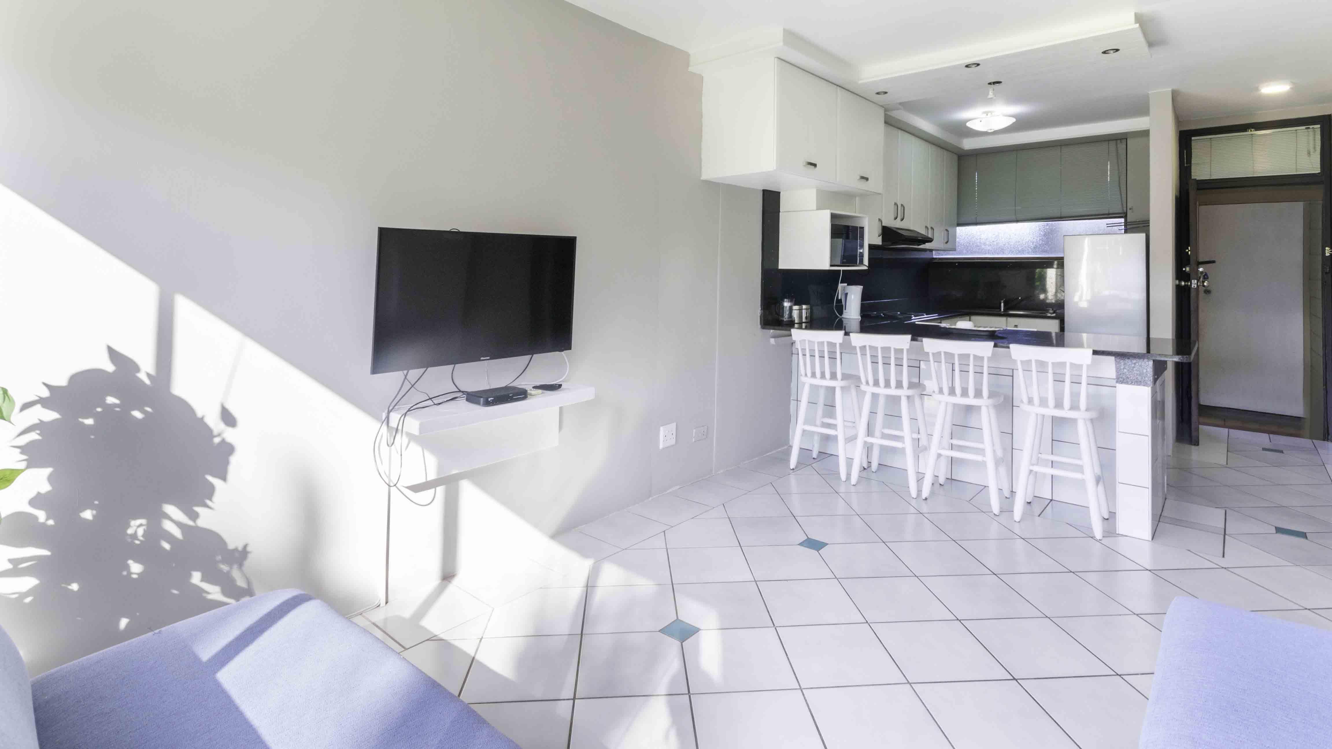 La Ballito is a Ground floor unit which is situated directly across from the Main Beach in Ballito, The unit consists of open-plan kitchen with large a stove, microwave and refrigerator. Breakfast nook in kitchen. The lounge is equipped with open view decoder is available. The unit has 2 double bed rooms that can sleep 4 people. All bedding and crockery is provided. Equipped with air-conditioning and neat tiled floors.