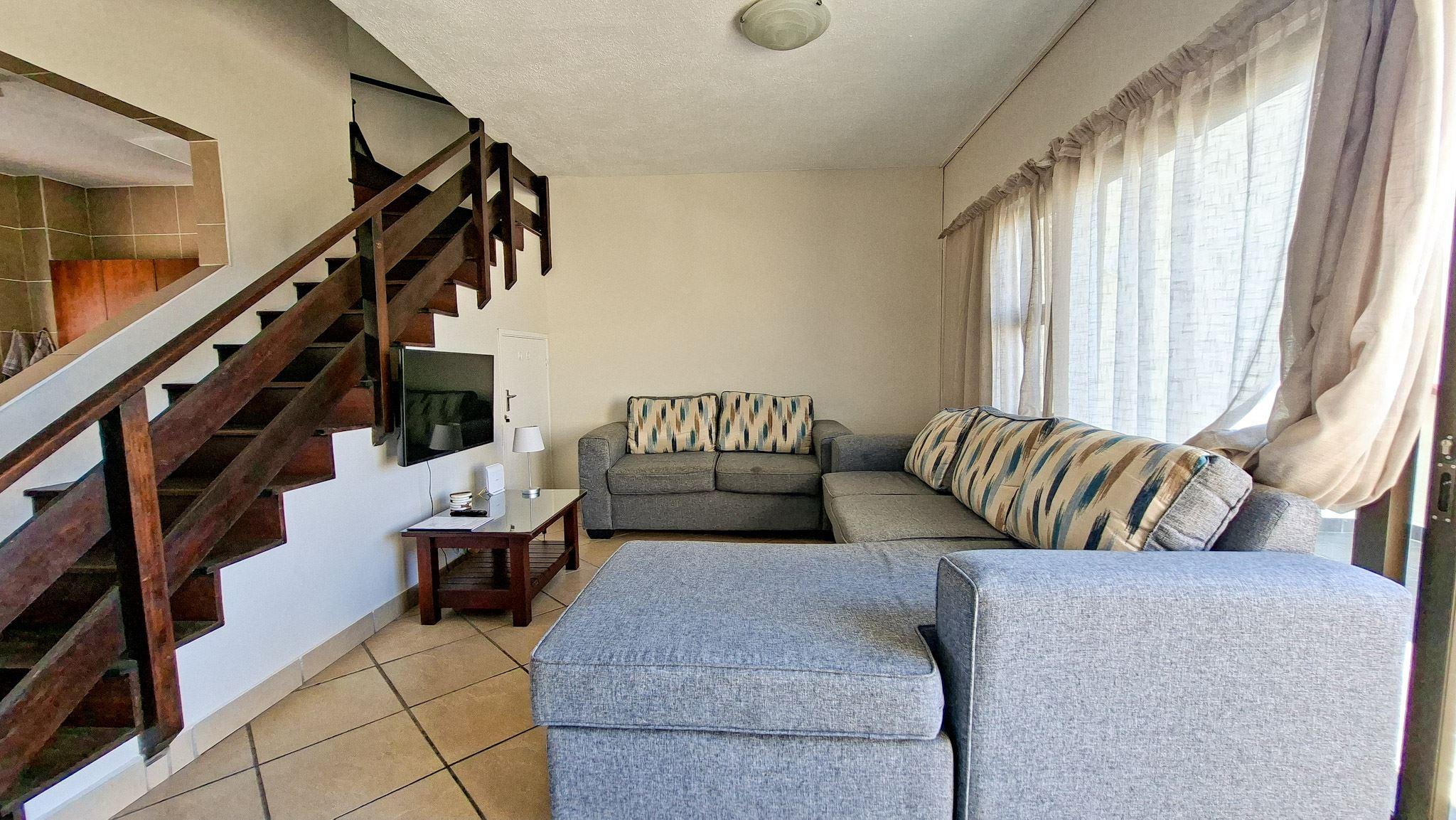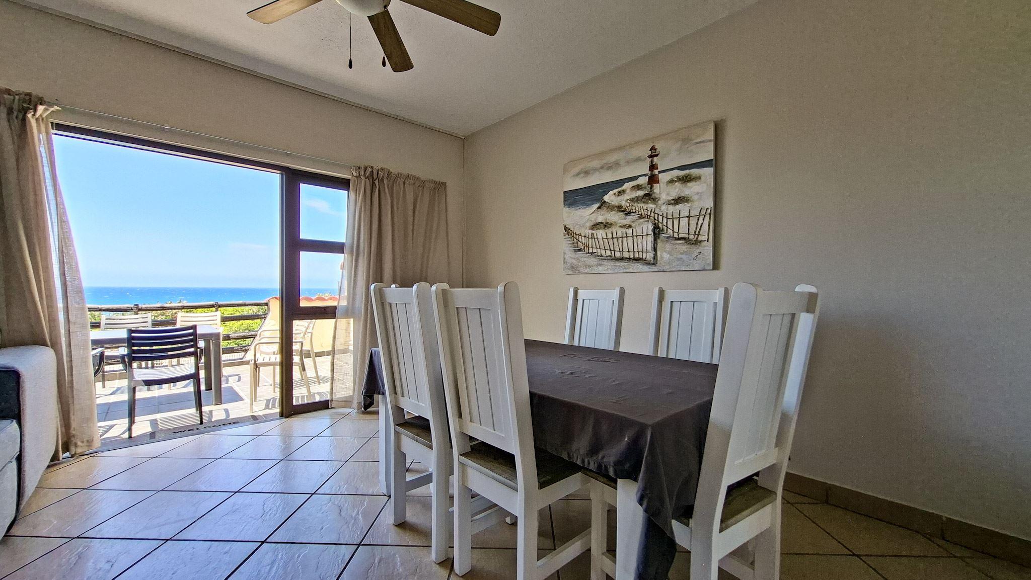 La Corsica 18 is a lovely self-catering holiday duplex situated in a secure building in Beacon Rocks, Margate. It is ideal for friends and family who are looking for a peaceful and convenient homebase from where they can explore and enjoy this coastal town. The unit is a spacious 3-bedroom, 2-bathroom beachfront duplex in the heart of Uvongo—just a 3-minute stroll to the main beach. Styled with a warm Moroccan flair, this family-friendly home comfortably sleeps up to 4 guests and offers an uninterrupted 180 sea view.The main, second and third bedrooms have a double bed