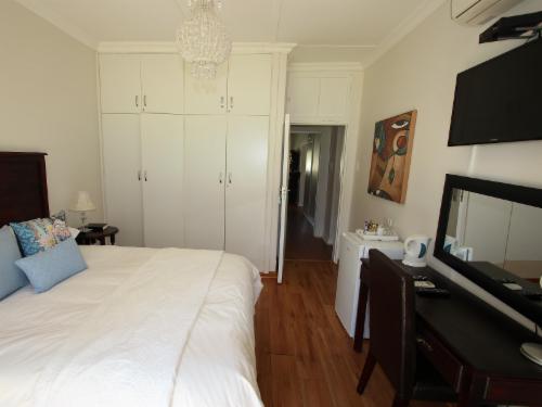 As you step into our well-appointed rooms, you'll be enveloped in a tranquil ambiance that is tastefully decorated with a light and friendly touch. Designed with your comfort in mind, our en-suite bedrooms offer luxury percale linen, private entrances facing the garden and pool. You can expect clean and comfortable accommodations that serve as a perfect substitute for home while you're away. Each room is equipped with a flat-screen television featuring selected DStv channels, tea and coffee-making facilities, and standard toiletries.