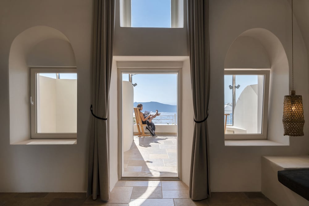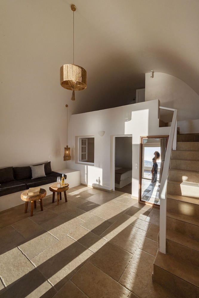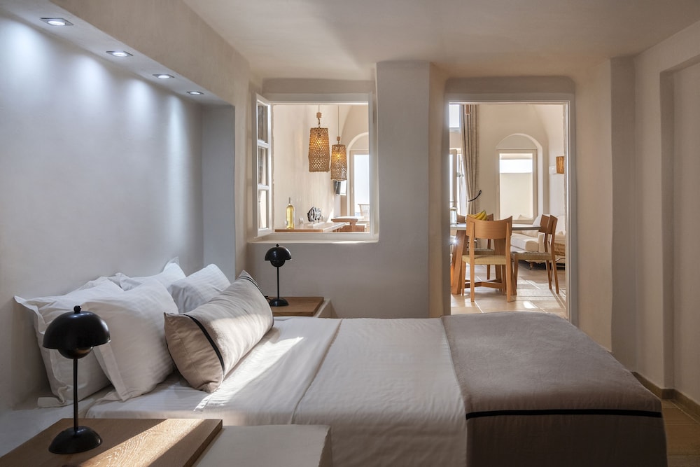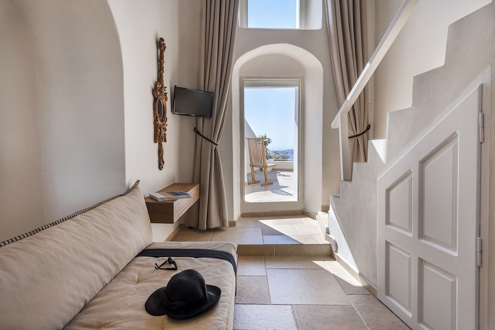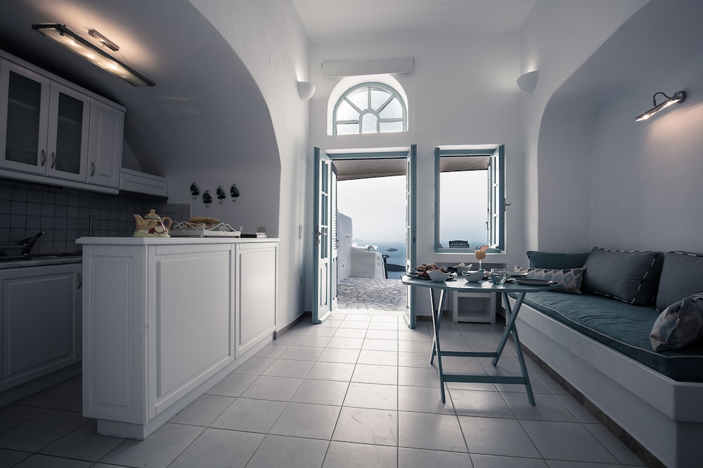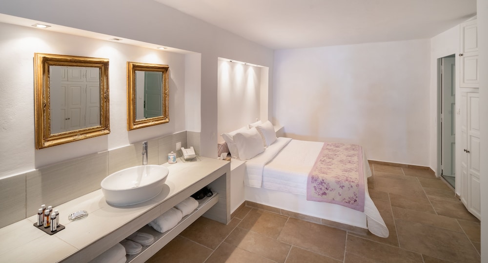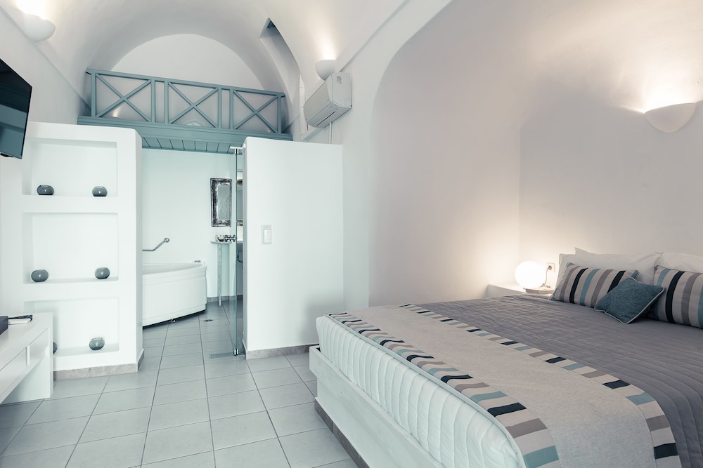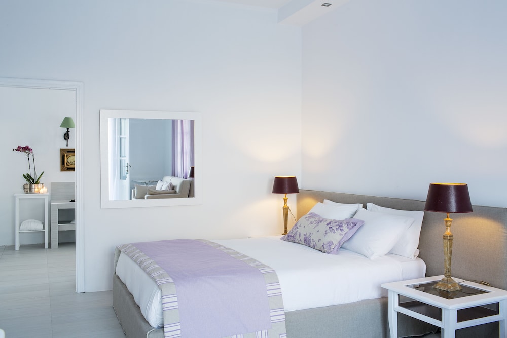 La Maltese is located at the highest point of the Caldera 250 metres above the sea on the top of Imerovigli. It offers an exclusive spa centre with hot tub and hamam and spectacular views of the volcano and the cliff.This neoclassic mansion is a true sample of luxury. The feeling of intimacy is projected through each of its rooms and suites. Each air-conditioned unit has a CD player satellite TV and safety deposit box. Bathrooms are stocked with a hairdryer fluffy bathrobes and slippers.The pool area offers a 250 square metres veranda overlooking the caldera. Sun beds are also featured. The pool bar next to the pool serves drinks cocktails and a great selection of champagnes.Full breakfast is served at the time and place of the guest's preference. The Lounge menu is available every day from noon until late in the evening. It is a selection of international dishes. La Maltese Restaurant serves à la carte candlelit dinners on an open-air veranda with spectacular views.