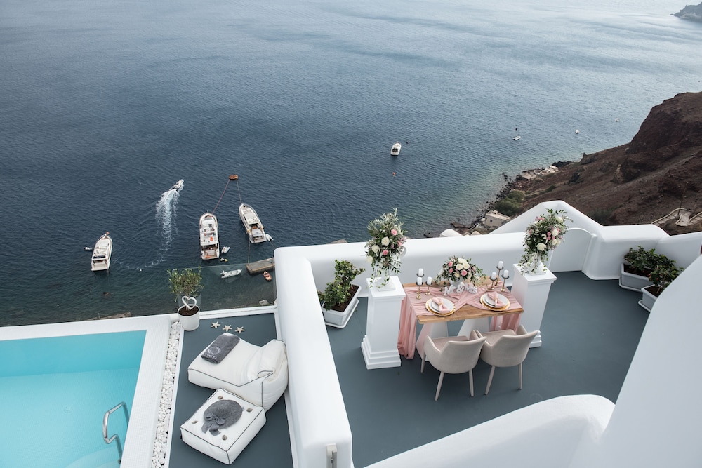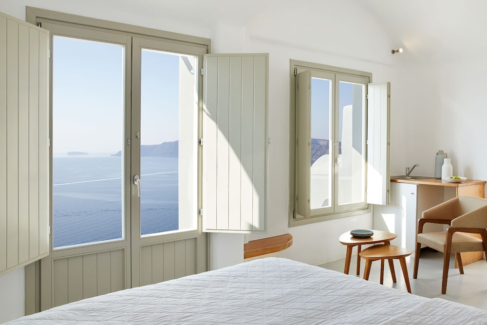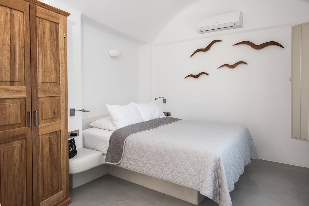 These newly built villas are a cluster of cave houses in the heart of the caldera. Built in the traditional dug-out manner and constructed along time-honoured lines, they consist of fine accommodation units that have been designed according to the strictest criteria to satisfy evening the most demanding of visitors. Situated in the best part of the village Oia, they enjoy the most spectacular view over the Aegean Sea. The hotel is within walking distance from the bus stop and from all shops and restaurants in the village. Most importantly the beach is just 30 metres away. The villas are elegantly decorated and consist of a bedroom and a separate living area, as well as a balcony enjoying views over the caldera. Guests can relax by the fresh-water outdoor swimming pool or order an in-room massage. For those that want a little adrenaline rush the beach offers plenty of opportunities.You are kindly reminded that according to our hotel policy,children under 13 years old are not accepted to our hotel for safety reasons.