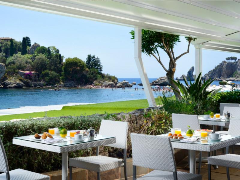 The 5-star luxury Hotel La Plage Resort is located inside the Isola Bella Nature Reserve in Taormina. It is surrounded by maritime pines and fragrant gardens and positioned directly on the beach, just a few steps from the cable car going to the historic town centre of Taormina. La Plage Resort offers 61 rooms, including Bungalows and Suites. All rooms have been furnished using modern, informal design; in some rooms the external private Jacuzzi, with a view of the sea or of the ancient pine forest, will make guests stay a precious one. The Fusion restaurant serves traditional Sicilian and Mediterranean dishes that celebrate the flavours and colours of the location. The Fusion Bar completes the culinary offering with a wide choice of cocktails and spirits. The Expure Spa provides a Turkish bath, Jacuzzis and massage cabins.