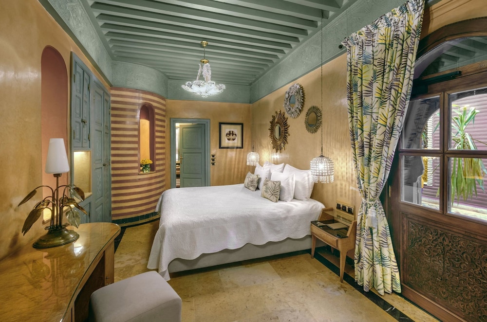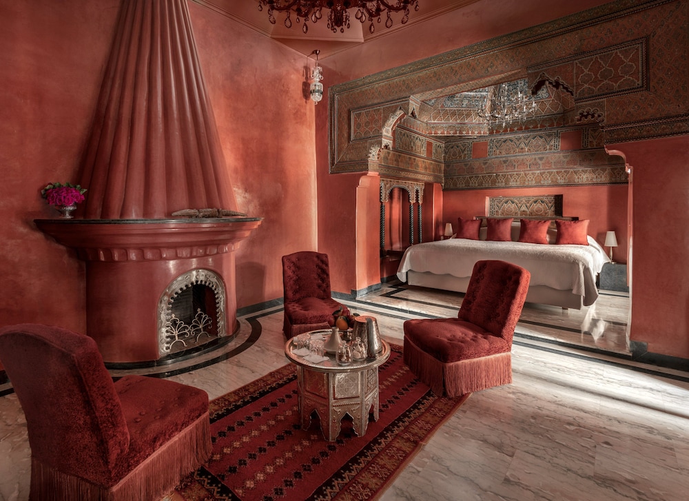 Facilities and services include wireless Internet access, 24 hour reception, swimming pool, restaurant, bar, solarium, sauna, Turkish bath, library, elevator, gym, spa treatments (extra charge) and meeting room.Rooms feature wireless Internet access, air conditioning, T,V. telephone, fridge, safe, hairdryer and bathroom.Suites also feature with private balcony/terrace.Address: 403 Rue de la Kasbah, 40000 Marrakech, Morocco.