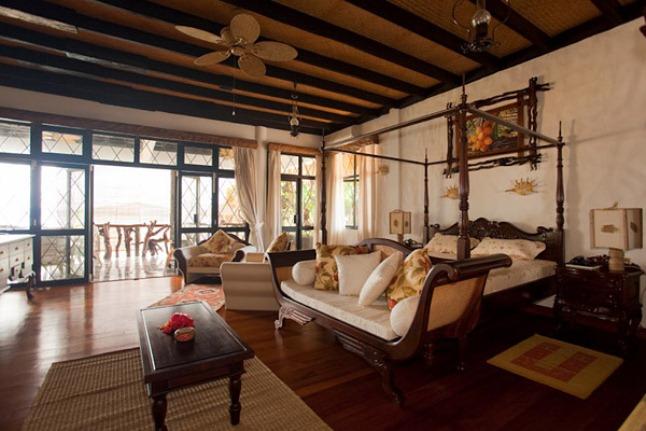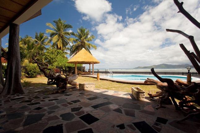 Situated right on the beach at Anse Reunion, on the lovely ssland of La Digue, this villa is warmly decorated and boasts four large en-suite bedrooms, large verandahs, and a swimming pool with a beachfront gazebo. The luxurious attic suite features an extra king-size four poster bed, minibar, tea making facilities, and open-plan bathroom with sauna, shower and Jacuzzi. The master bedroom has a king-size four poster bed and en-suite bathroom with sauna, shower and Jacuzzi, the children's bedroom has a queen-size bed and en-suite bathroom, and the small ground floor bedroom has a d