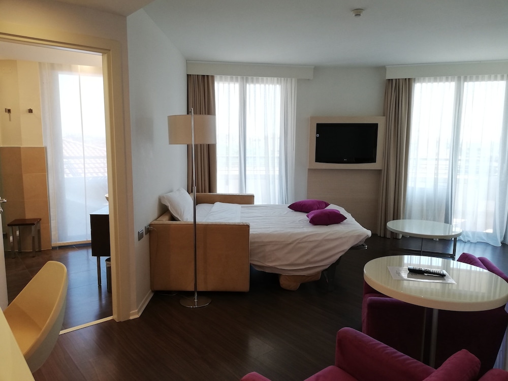 This modern hotel in Grado faces the lagoon located between Venice and Trieste. Its wellness centre indoor swimming pool and restaurant provide panoramic views of the lagoon and Adriatic Sea.The stylish rooms of the Laguna Palace Hotel are spacious and come with parquet floors. Each room features a comfortable bathroom a dressing room and satellite TV.The fully equipped wellness centre at the Laguna Palace offers a relaxing experience. It includes a large heated pool a Turkish bath and a full range of massage and beauty treatments.The terrace is ideal for sunbathing and enjoying breakfast. You can also choose from a tempting menu of local food at the restaurant which is open for both lunch and dinner.