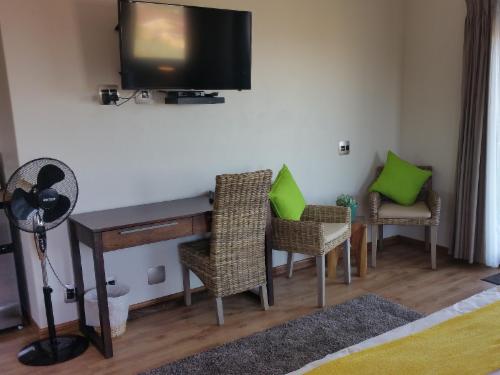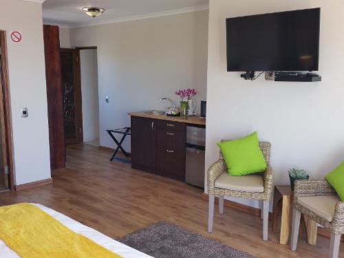 The Giraffe Flatlet can also accommodate an additional person on an additional, extra full size (0,90 m x 1,90 m), roll-in single bed by arrangement (at an additional charge).