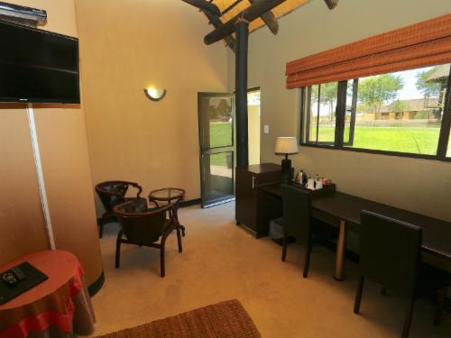 Hang out on the beautiful lawn while bird watching or waiting for the animals to reach the waterhole.