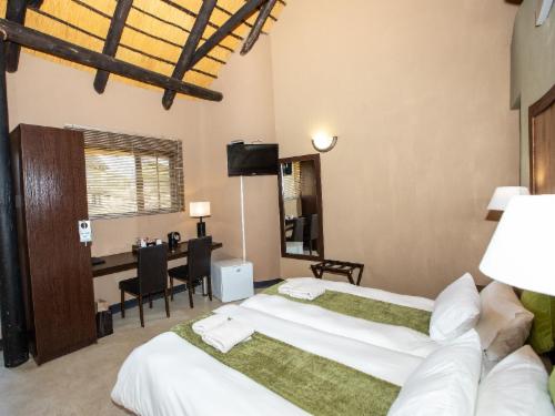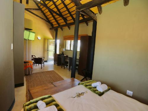 Lapa Langa Lodge is situated just 35 km from Mariental, on the edge of the Kalahari Desert, and is great stopover en route to Sossusvlei, the Fish River Canyon and Mata Mata.The lodge offers a variety of rooms to choose from to cater for a couple or a family travelling together. The rooms all feature their own private entrance, with views towards the waterhole. Lapa-Lange offers guests true Namibian hospitality in a place where they can relax and enjoy the tranquil surroundings. In the evenings, guests are spoilt with true Namibian country cuisine. We also offer lu