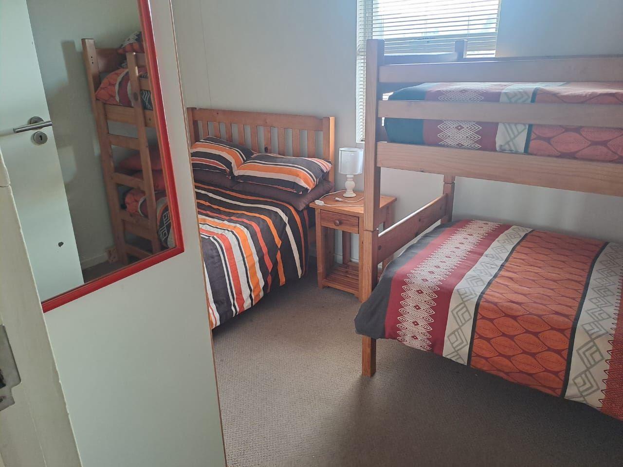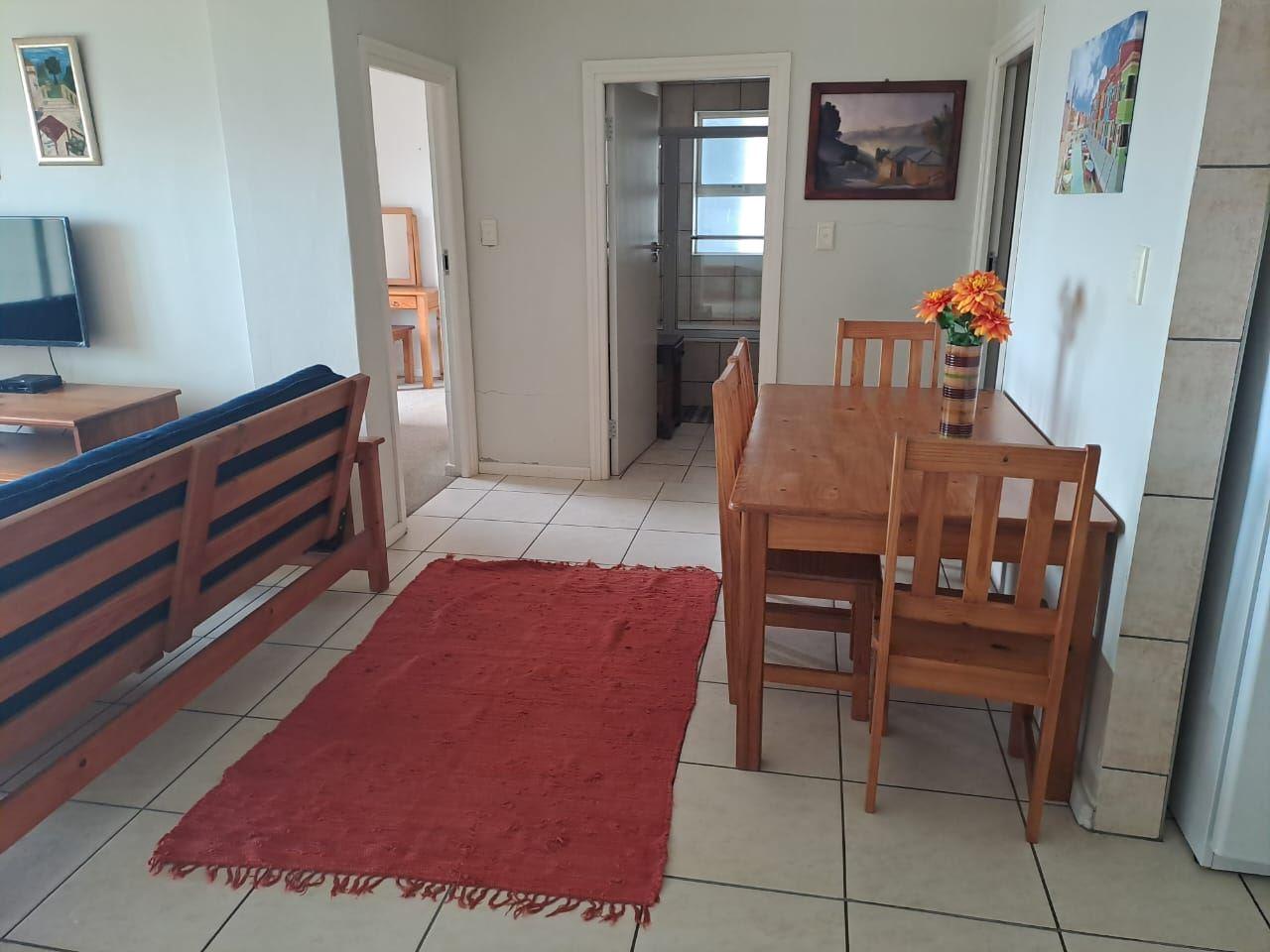 This lovely apartment is located in the seaside town of Mossel Bay, just 500 meters walk away from the beach.There are two bedrooms offering bunk and double beds, and they share a bathroom. The open-plan living area features a sleeper couch for an extra person. The living area leads out onto the balcony where you can enjoy the sea view. The clients have to bring their own DStv decoder and smart card. The unit has a self-paid electricity meter and units can be bought at the bus stop and filling station in the main road into Mossel Bay.A fully equipped kitch