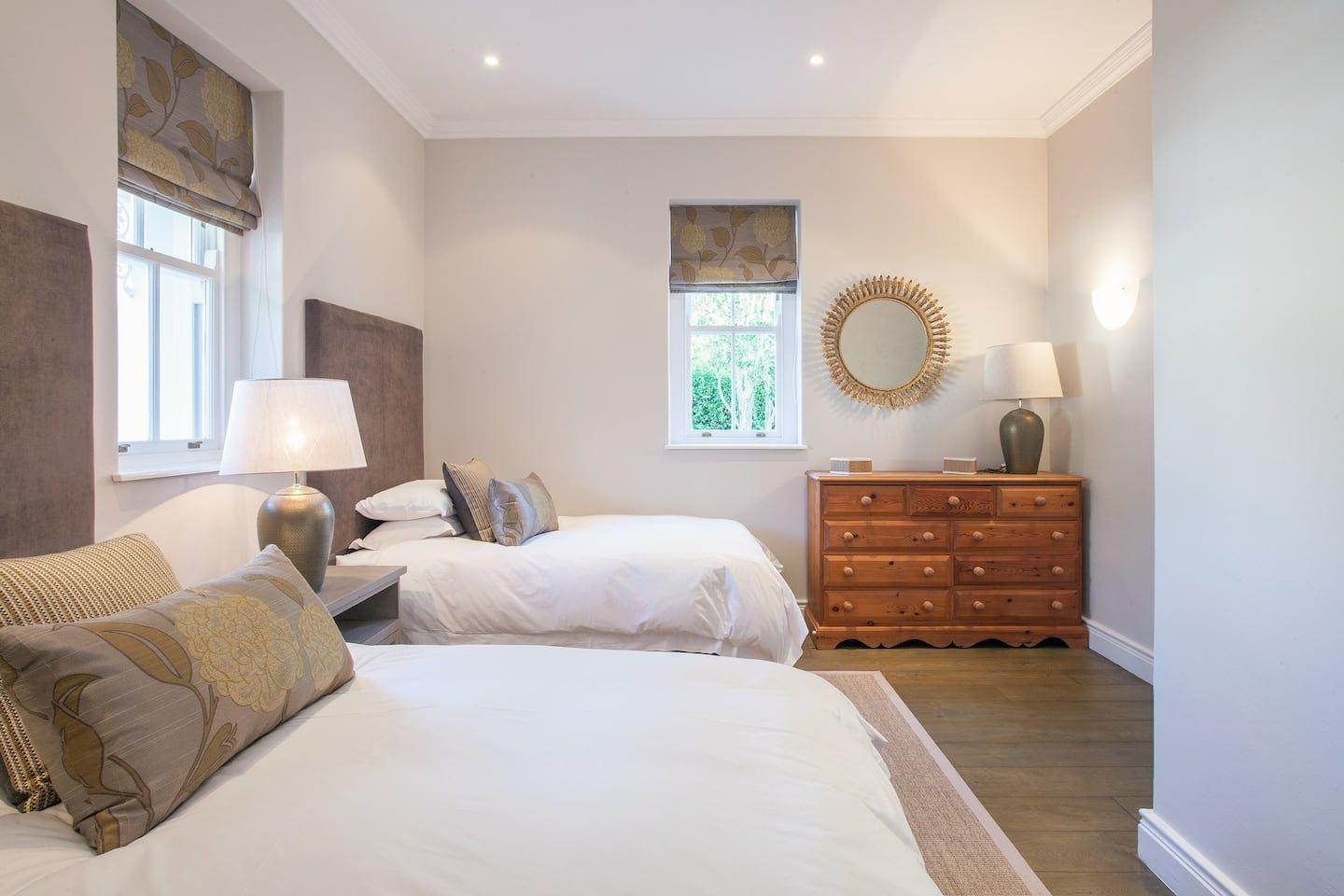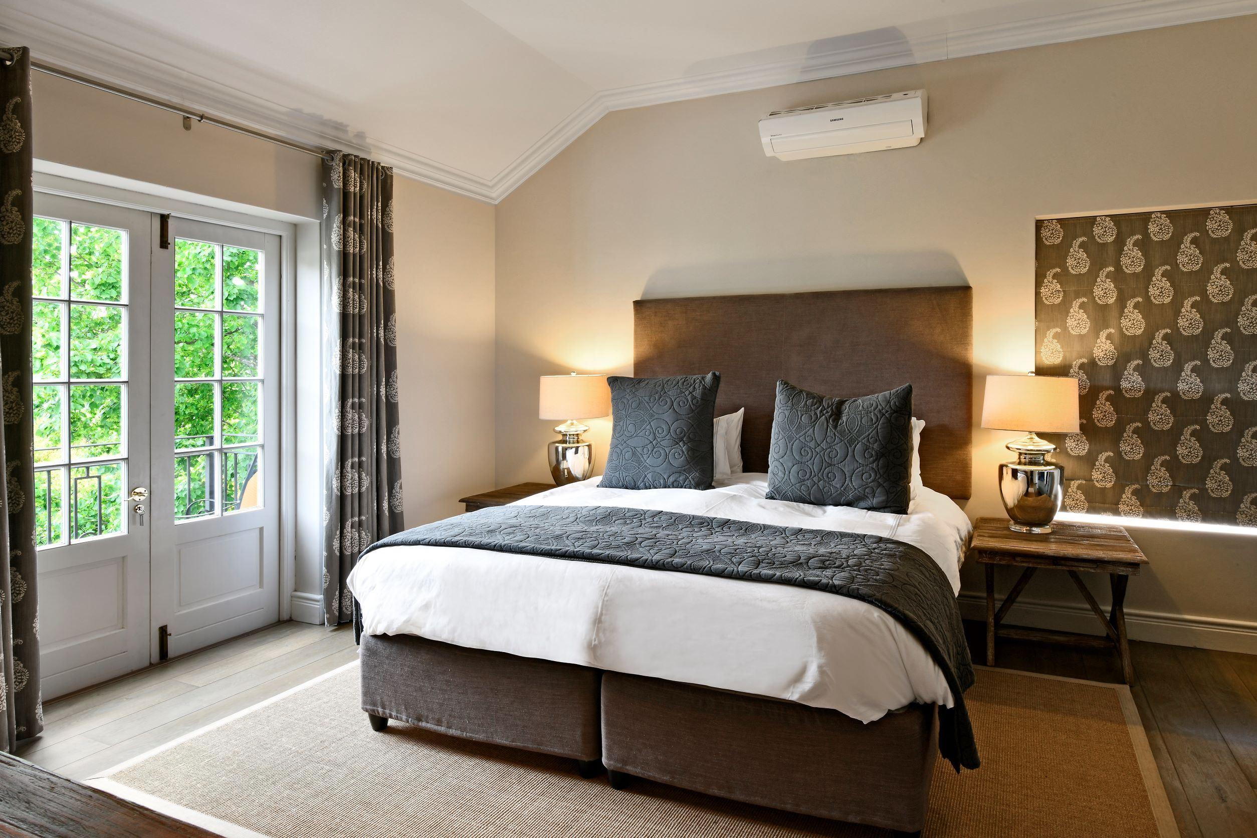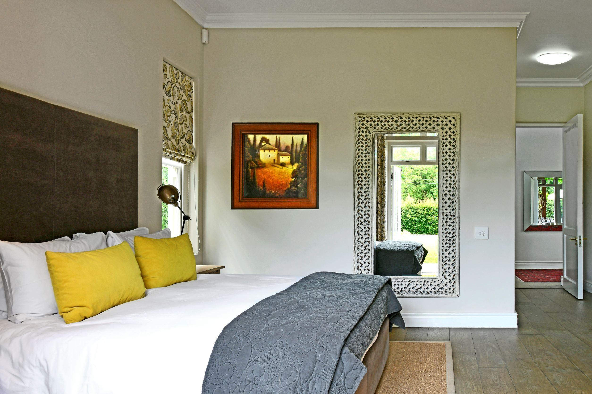 Le Bas De Lain, a beautiful villa in the heart of Franschhoek. All en-suite king-sized bedrooms/suites. Stunning private outdoor entertaining areas and a large pool. Minutes walk from the village center, the Huguenot monument, and the museum. Space and location cannot be beaten.This wonderful luxury boutique residence feels like a slice of heaven. There are six generously proportioned bedrooms, all en-suite with a combination of king and twin beds. The main entertaining areas are all accessible to guests. Superb indoor areas with high ceilings, wooden floors, open fireplaces and al