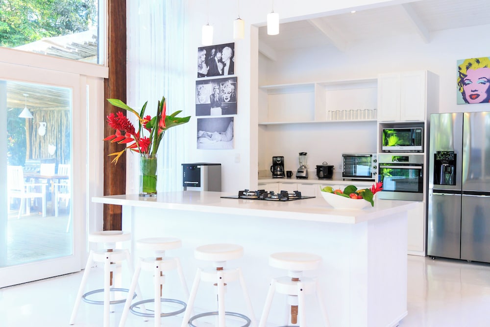 Offering a beautiful tropical forest setting Le Cameleon Boutique Hotel is a walking distance from Cocles beach in Puerto Viejo. This luxurious resort features a beach club an outdoor swimming pool and a spa.The chic rooms and suites at Le Cameleon Boutique Hotel have minimalist white décor and terraces overlooking the forest. All accommodations have an iPod docking station free Wi-Fi and a flat-screen TV.Creative international cuisine is served in the Beach Club Noa. The Jungle Spa offers a range of treatments including facials body scrubs body wraps and massage.The hotel can arrange trips to nearby Cahuita National Park Kekoldi Indigenous Reserve and Veragua Rainforest. Other activities include excursions to cocoa plantations and sloth sanctuaries rainforest canopy tours and dolphin and turtle watching trips.