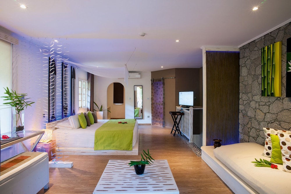 Facilities and services include restaurants,bars, swimming pools, spa treatments (extra charge), business center, safe at reception, wireless Internet access at public areas, gift shop, Jacuzzi, Hammam (extra charge), beauty salon (extra charge), Villas feature minibar (extra charge), TV, telephone, living area, wireless Internet access (extra charge), air conditioning, kettle, bathroom, hairdryer and balcony / terrace.Garden Suite Residence also feature master bedroom, two TVs and separate living area.Villas de Charme also feature outdoor bathroom.Villas de Charme Élégance also feature Jacuzzi and outdoor bathroom. Villa Présidentielle also feature private swimming pool, three separate bedrooms, separate living area and dining room, outdoor Jacuzzi and outdoor bathroom.Please note that some of the above facilities may be closed due to weather / seasonal conditions.Note: Reception with limited opening hours. Please advise flight number and estimated arrival time when booking this hotel.Address: Anse Severe, La Digue, Seychelles.