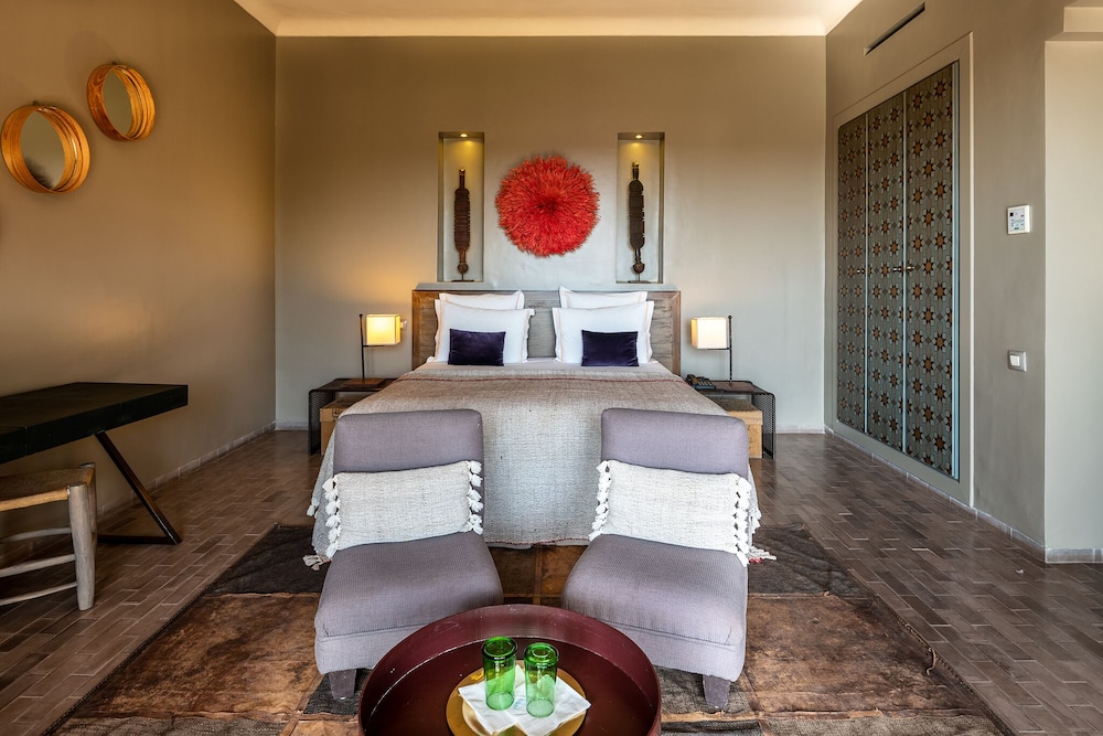 Le Palais Paysan is a unique boutique hotel with a minimalist architecture and a quiet location in the countryside, half an hour from Marrakech-Menara Airport. 16 rooms, with an elegant and contemporary style, offer from your balcony or terrace, the magic panorama of the Atlas Mountains. Nature, bold design and services including Turkish bath, massages, hot tub and pool will delight travelers seeking a stay full of discoveries and relaxation.