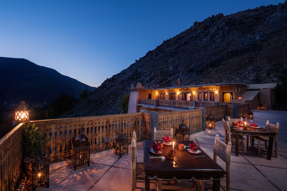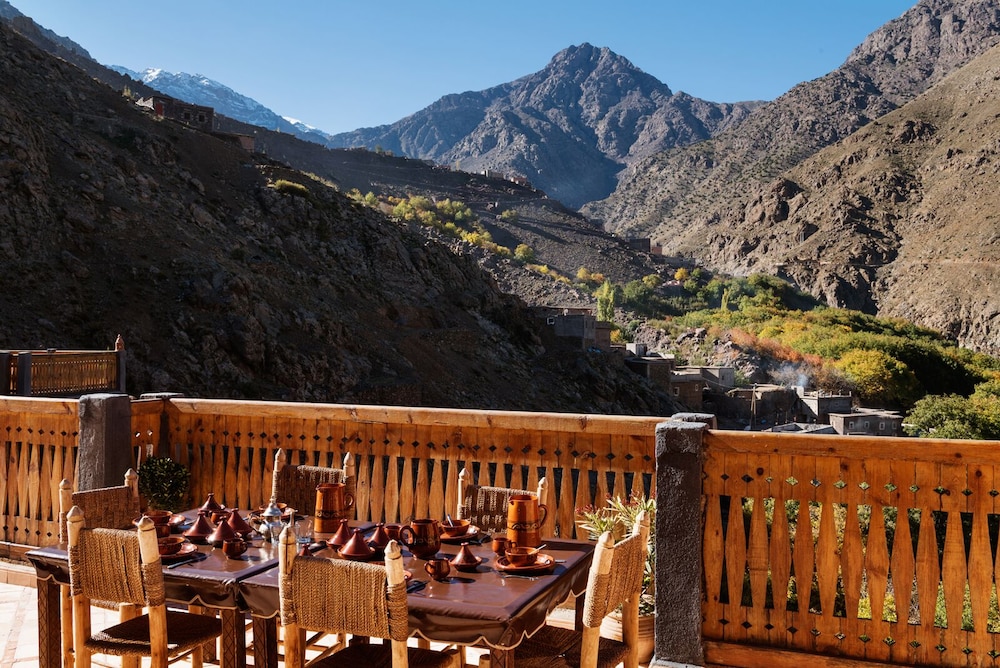 Set at the foot of Mount Toubkal, this resort offers a terrace with panoramic views of the Atlas Mountains. On-site spa facilities include a traditional hammam (Turkish bath) and massages with essential oils. The suites combine a Moroccan and Berber style. With air conditioning in each one, they also have a private balcony and a seating area. On the terrace or in the dining room, a continental breakfast is provided every morning. The guests can also sample Moroccan teas in the lounge or try traditional cuisine with local influences in the restaurant. Cooking lessons, trekking days and transfers to Marrakesh-Menara Airport can be organised at reception. Free private parking is possible on site and wired internet is available throughout the property.
