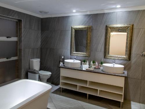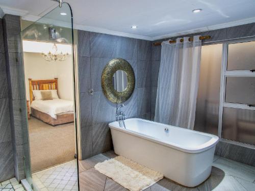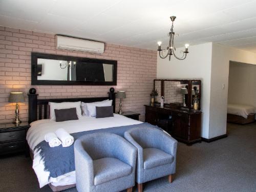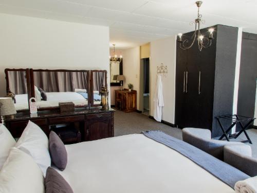 Leach Lodge is located in Kuruman, and is affectionately called the Oasis of the Kalahari. This lodge provides upmarket accommodation to many travellers en-route to Namibia, Gauteng or Cape Town.This bed and breakfast lodge offers nine, beautifully furnished rooms. Each room has a Queen-size bed dressed in percale linen, and en-suite bathroom with a spa bath. Rooms are equipped with air-conditioning, a bar fridge, a TV with DStv and a tea and coffee tray.On-site facilities include; a swimming pool, a childrens play area and a two conference venues. A hearty breakfast is served every morning an