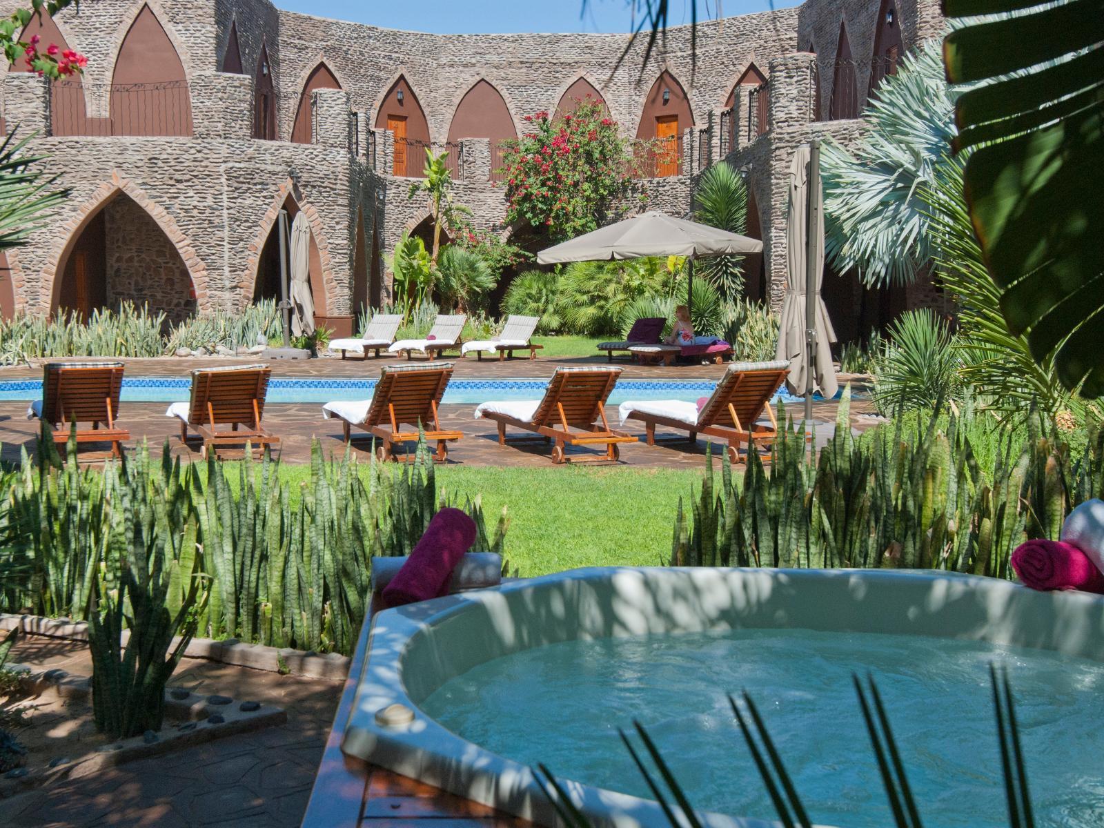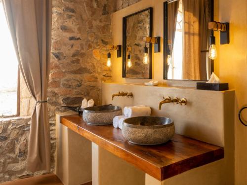 Le Mirage Resort & Spa is located only 21 km from Sesriem the entrance gate to the Namib Naukluft Park and Sossusvlei. The resort is a harmonious blend of luxury and nature with each room offering a spectacular view of the Namib Desert. Guests are accommodated in 25 luxury rooms with en-suite facilities, air-conditioning, safe, mini bar and coffee and tea facilities. The resort has a spacious restaurant sheltering guests against the harsh desert climate. A highlight at the resort is our wellness centre which is specialized in massages, pedicures, manicures, aroma massages and de-s
