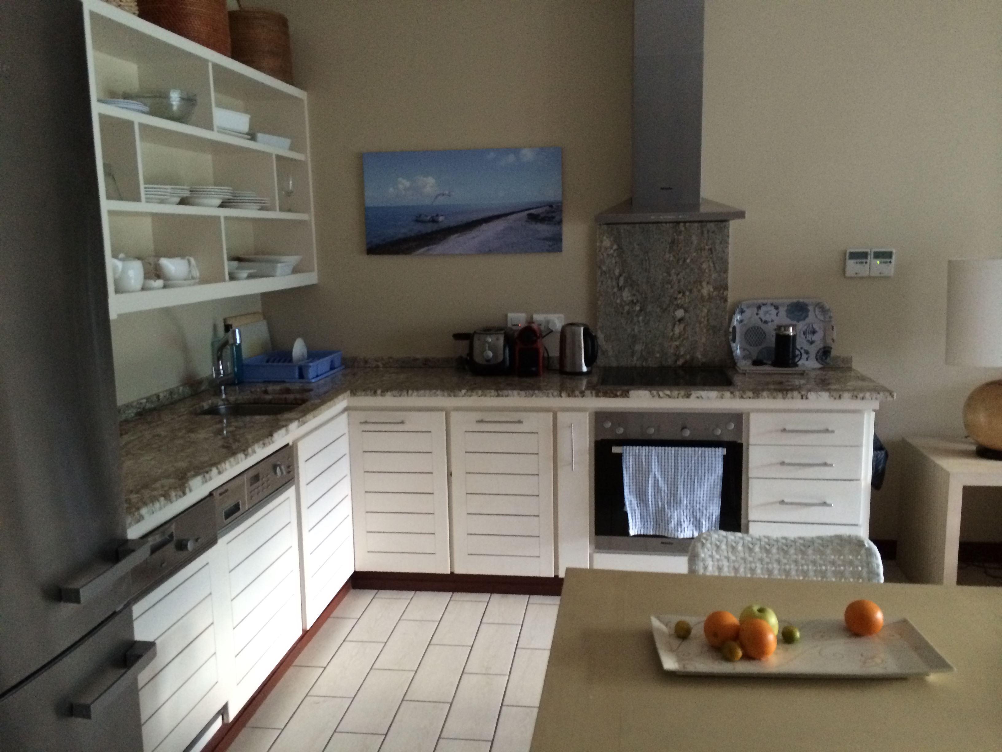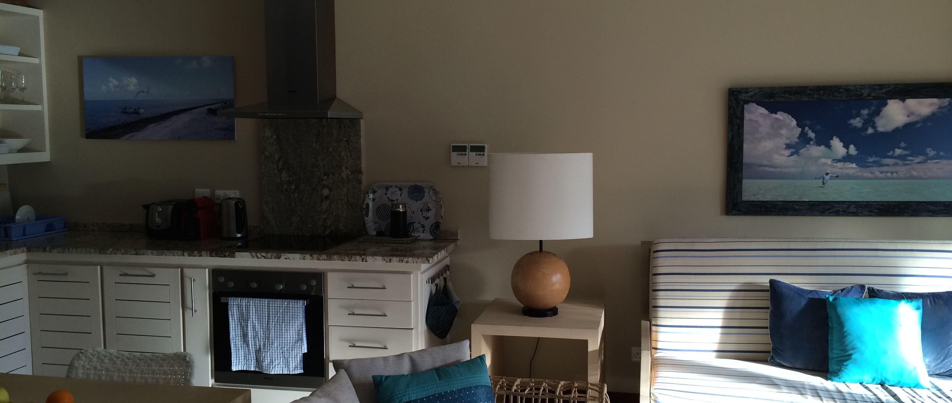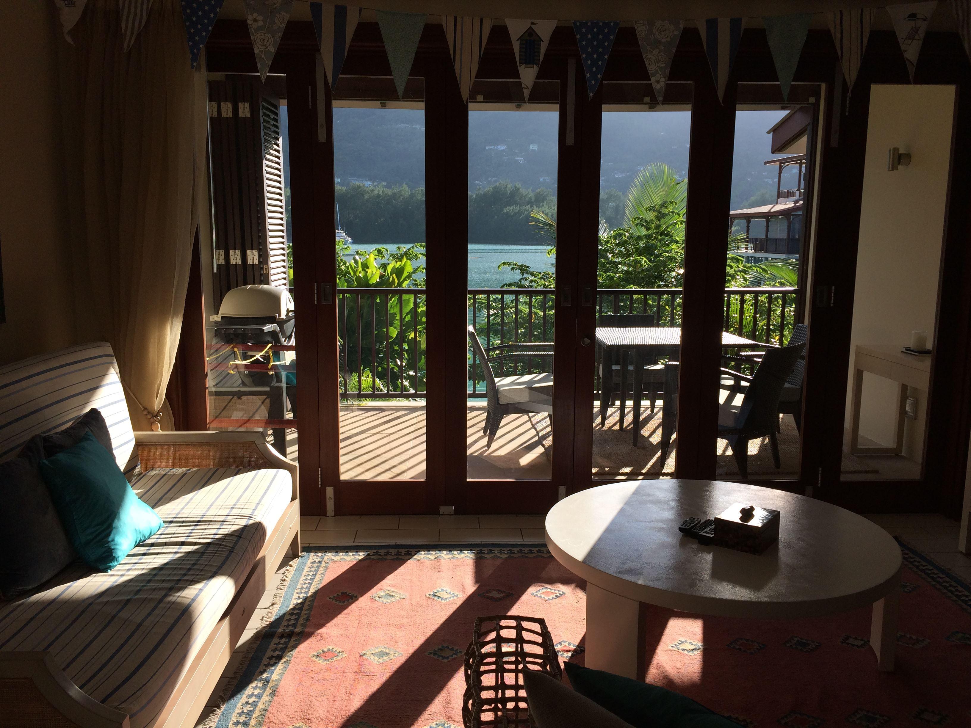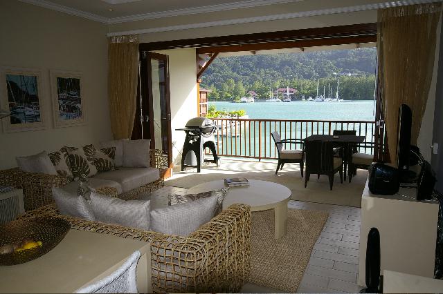 The apartment has one very spacious bedroom with a queen-sized bed, dressed in the very best bed linen. The shower, toilet and his/hers wash basins are en-suite. The bedroom opens onto a patio overlooking the boats and berths of one of the Island's marinas. The open-plan living room has been decorated in modern Seychellois style, with a sleeper couch that can sleep 2 extra guests, comfy chairs, Satellite TV. The kitchen is equipped with everything for your self-catering needs - from a dishwasher, washing machine and Nespresso maker to a state of the art stove and fridge.