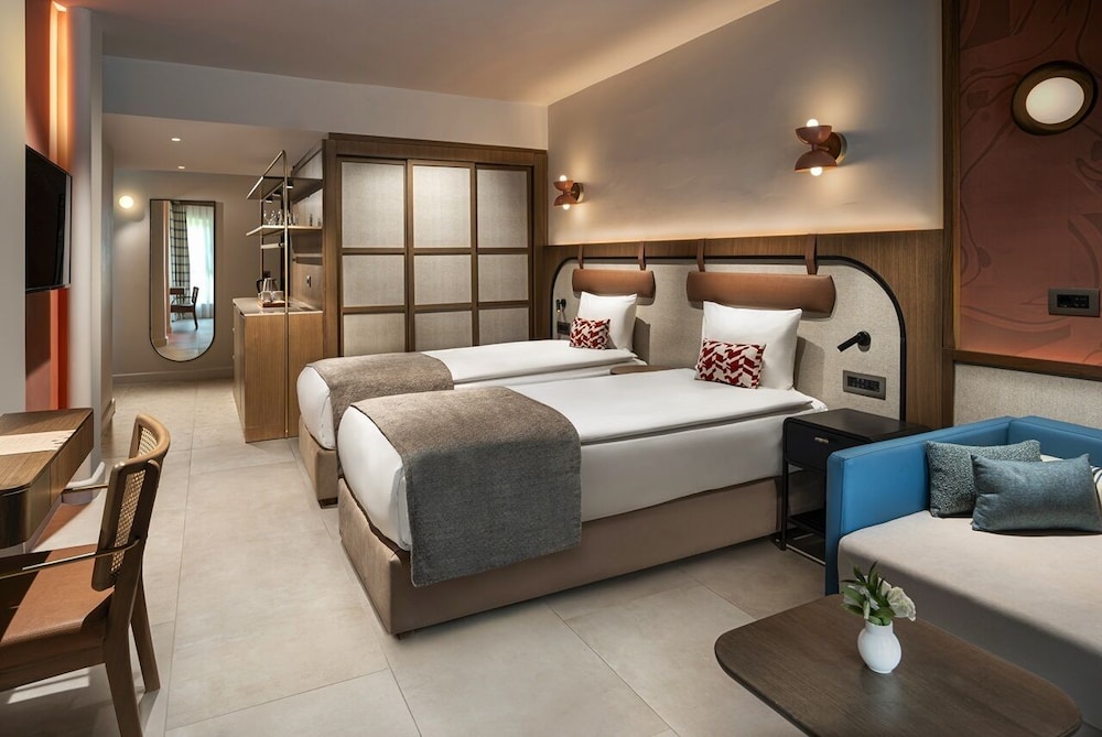 On the seafront of Oludeniz, Liberty Hotels Lykia has a private beach just under a half mile long, 19 swimming pools, a 3-hole golf course and a spa center. The hotel features a wide range of activities from diving to paragliding.Set among the green garden, the spacious villas at the Liberty Hotels Lykia include a private kitchen with kitchenware. Each villa includes air conditioning, a flat-screen TV and a balcony. Each also has a tea and coffee setup.Liberty Hotels Lykia has 9 restaurants that serve selected dishes from international cuisine, and 2 specially designed children's restaurants. You can enjoy Italian and Far East cuisine, or seafood at the sit-down restaurants, for a fee. There are also 10 bars, 2 cafes and a wine house on site.You can enjoy the outdoor, indoor, heated or adult-only pools and the children can enjoy the water slides. The spa center includes hammams and a range of massages. Water sports facilities and a fitness center are also available.The center of Oludeniz is 3.2 km from the hotel. Dalaman Airport is 70.8 km aw