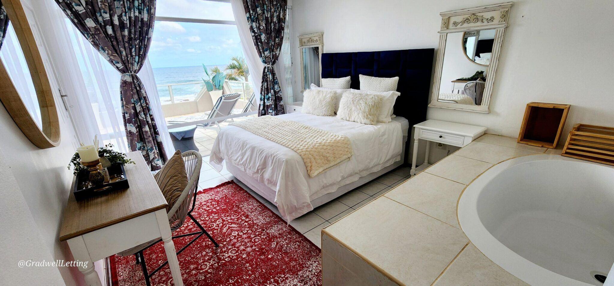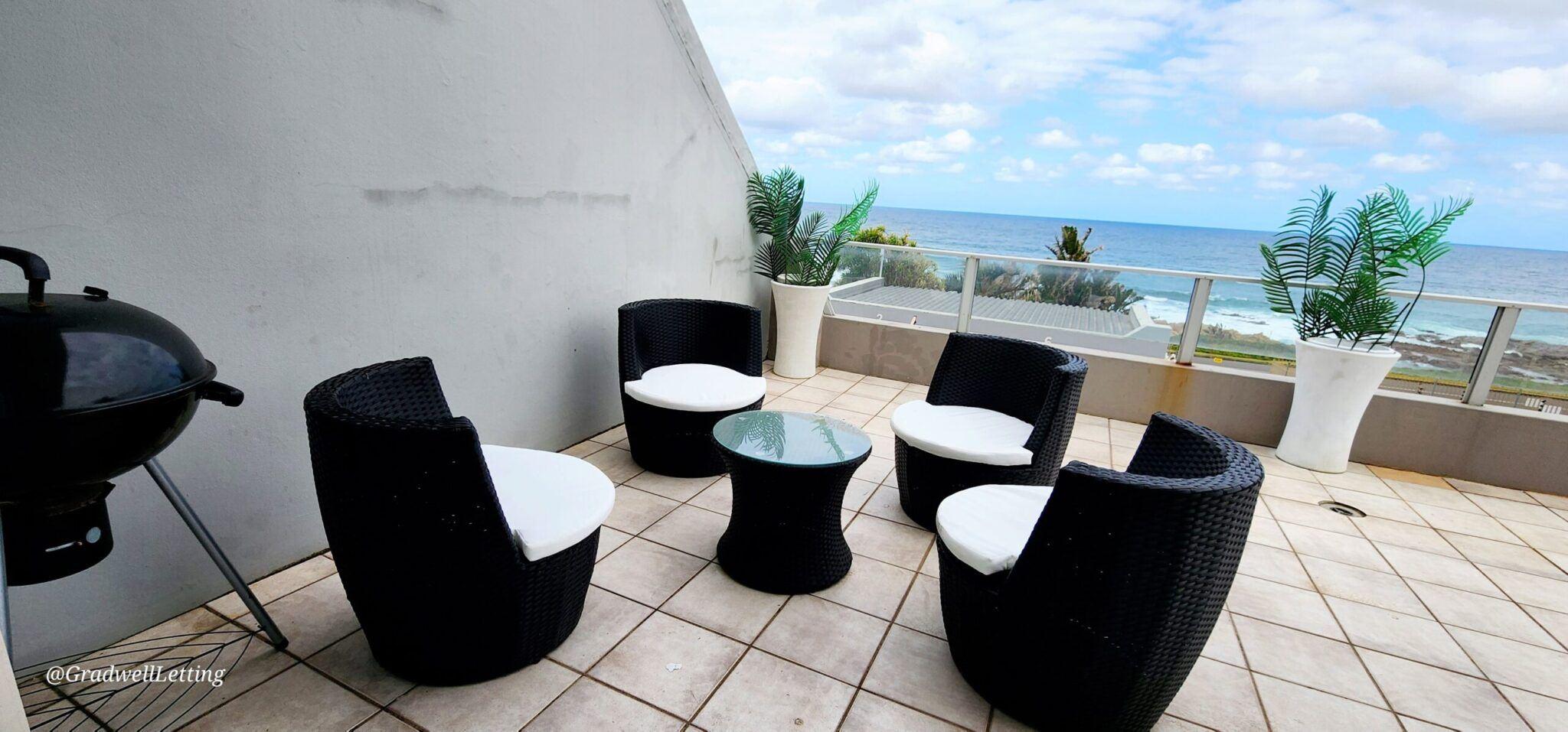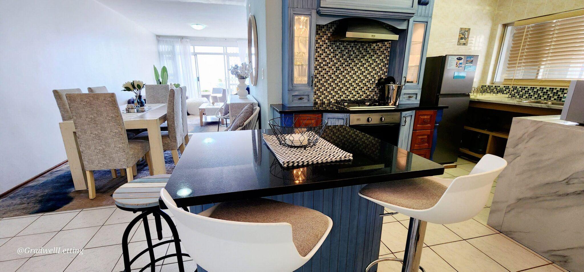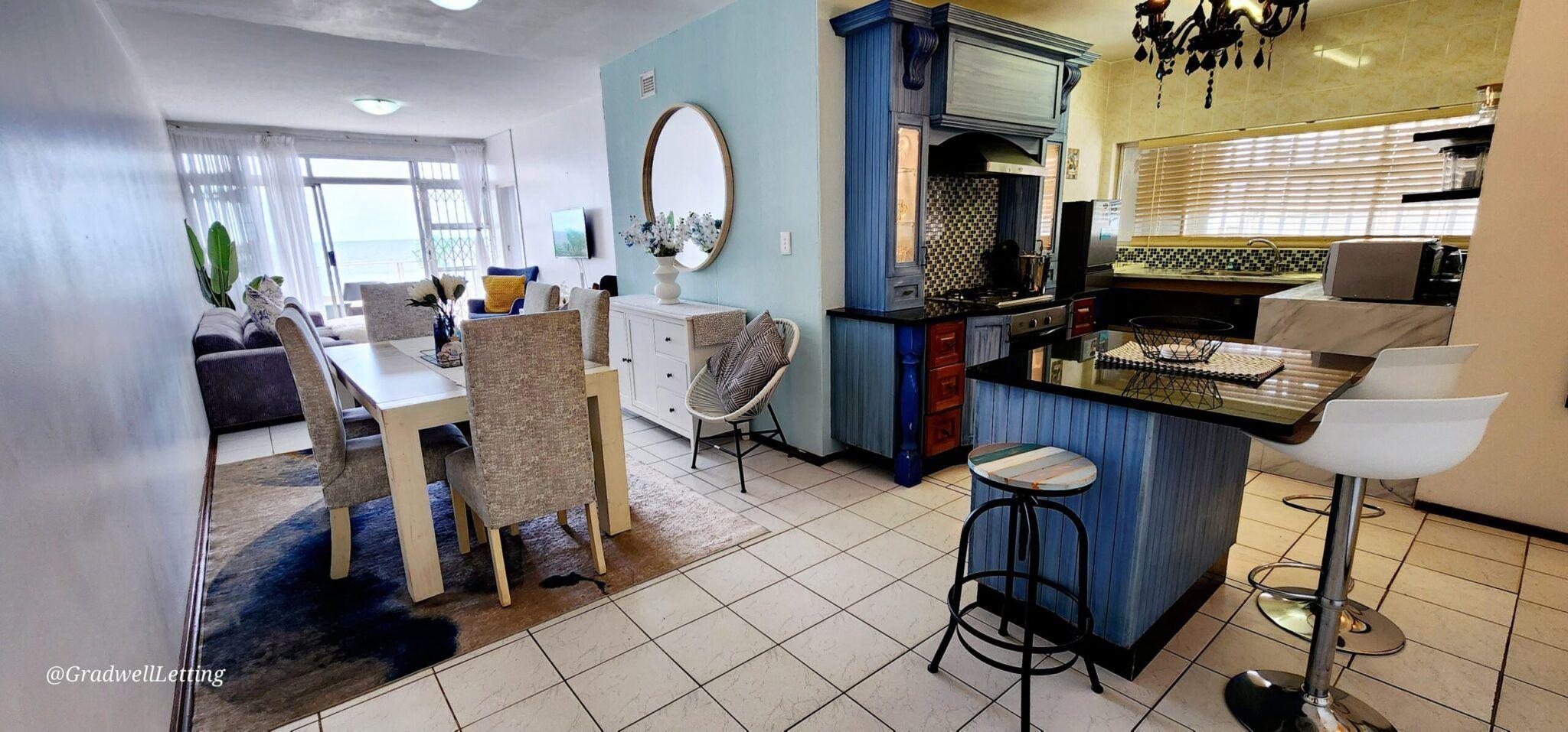 Libra 3 is a modern and beautifully decorated 6 sleeper, 3-bedroom, 2-bathroom unit, in a secure complex in Manaba, only about 100m to the Lucien beach and 50m from the Manaba tidal pool. It has stunning sea views from the large balcony area, lounge and main bedroom.The main bedroom is fitted with a king-sized bed, while the second bedroom has a queen, and the third bedroom is fitted with two single beds. All bedrooms are also equipped with ceiling fans, for your comfort.The main bedroom has a modern en-suite bathroom with an open bath area off the bedroom, and then a s