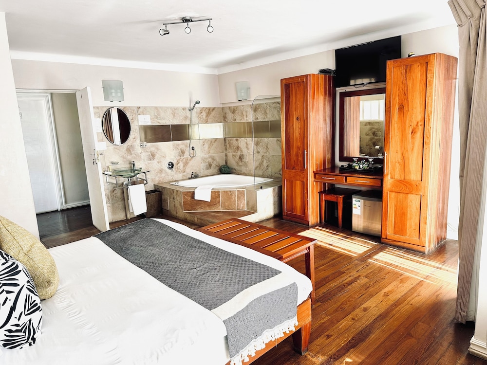 This historically protected building boasts 24 rooms and each en-suite bathroom offers a diva bath and Indian rock tiled bathroom walls. The rooms are fully fitted with bedding and towels provided, and they feature large balconies. The Lido Hotel has a big swimming pool and a children’s pool set in a serene and relaxing environment. The hotel is well placed in the Kliprivier Conservancy and Khoisan Land.