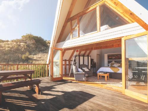 Two men who shared a dream met near the Karoo town, Cradock, one day and together they founded Linduli Lodge. If you feel the burning fire of life and the desire to experience adventure we invite you to pack your cameras and visit Linduli Lodge. Two luxury A-frame wooden houses that have awesome views across the area, were built from wood that is 100 years old. The pine trees were uprooted by a sudden, unexpected stormy wind. After the wood has undergone different processes, it was used for the building of these two huts where it found a new life.Our mountain Cabin can
